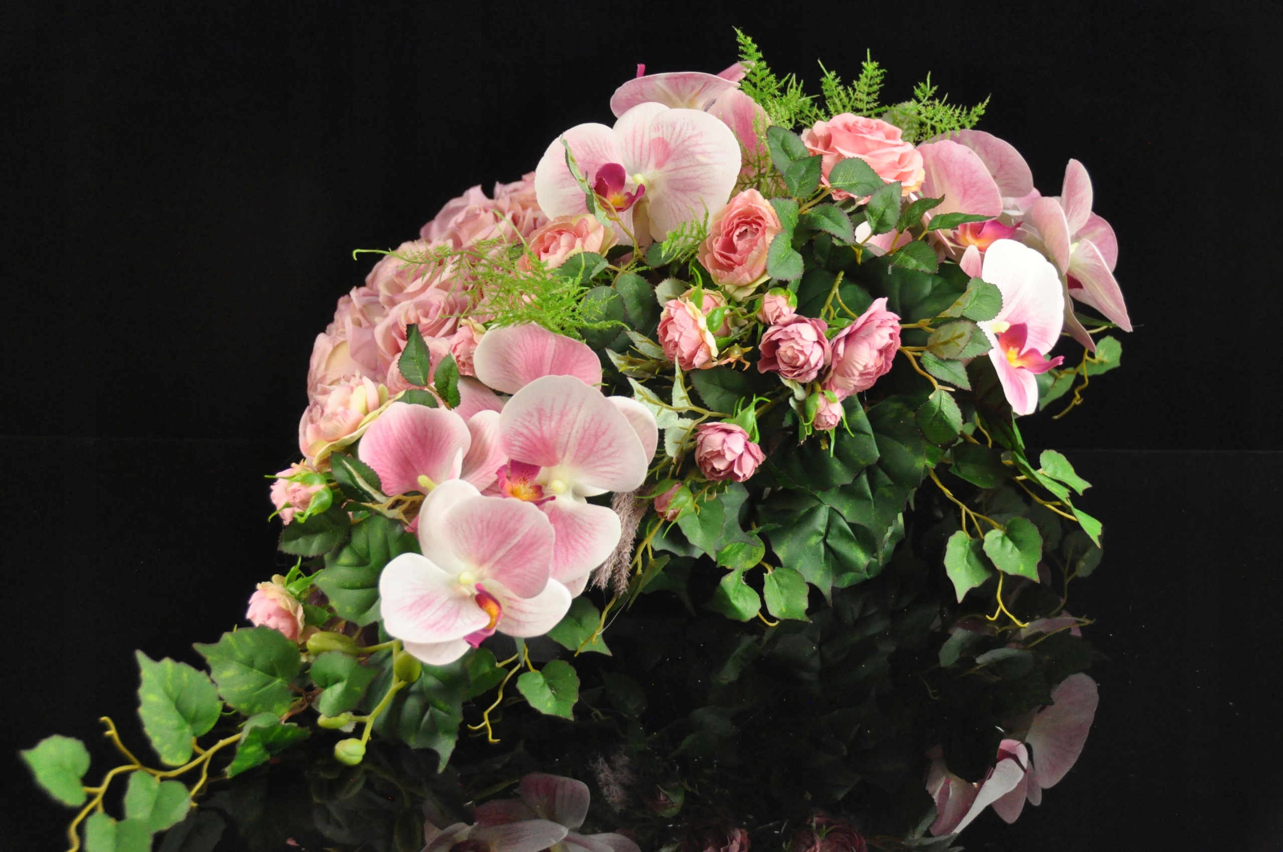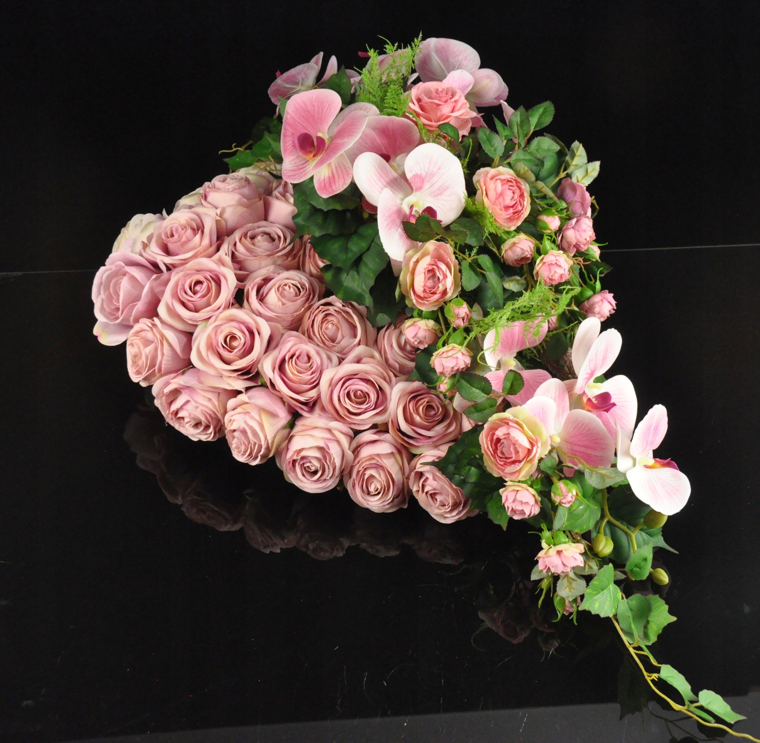 Могильная композиция, розы, орхидеи, сердце, могильное кладбище, головной убор