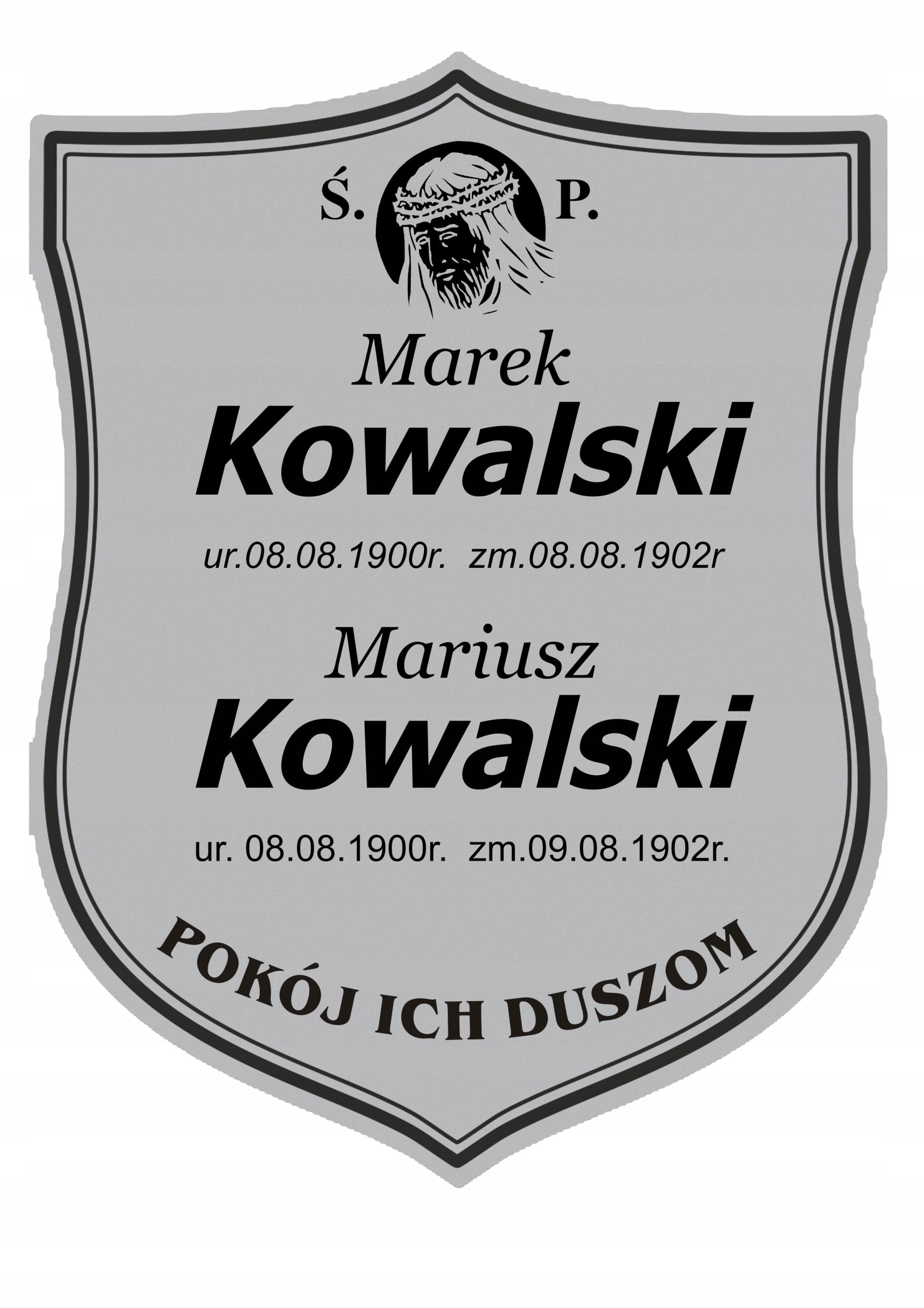 Мемориальная доска содержит данные об умершем человеке (имя, фамилия, даты), элегантно размещенные на золотом фоне. Возможность настройки контента в соответствии с вашими потребностями.