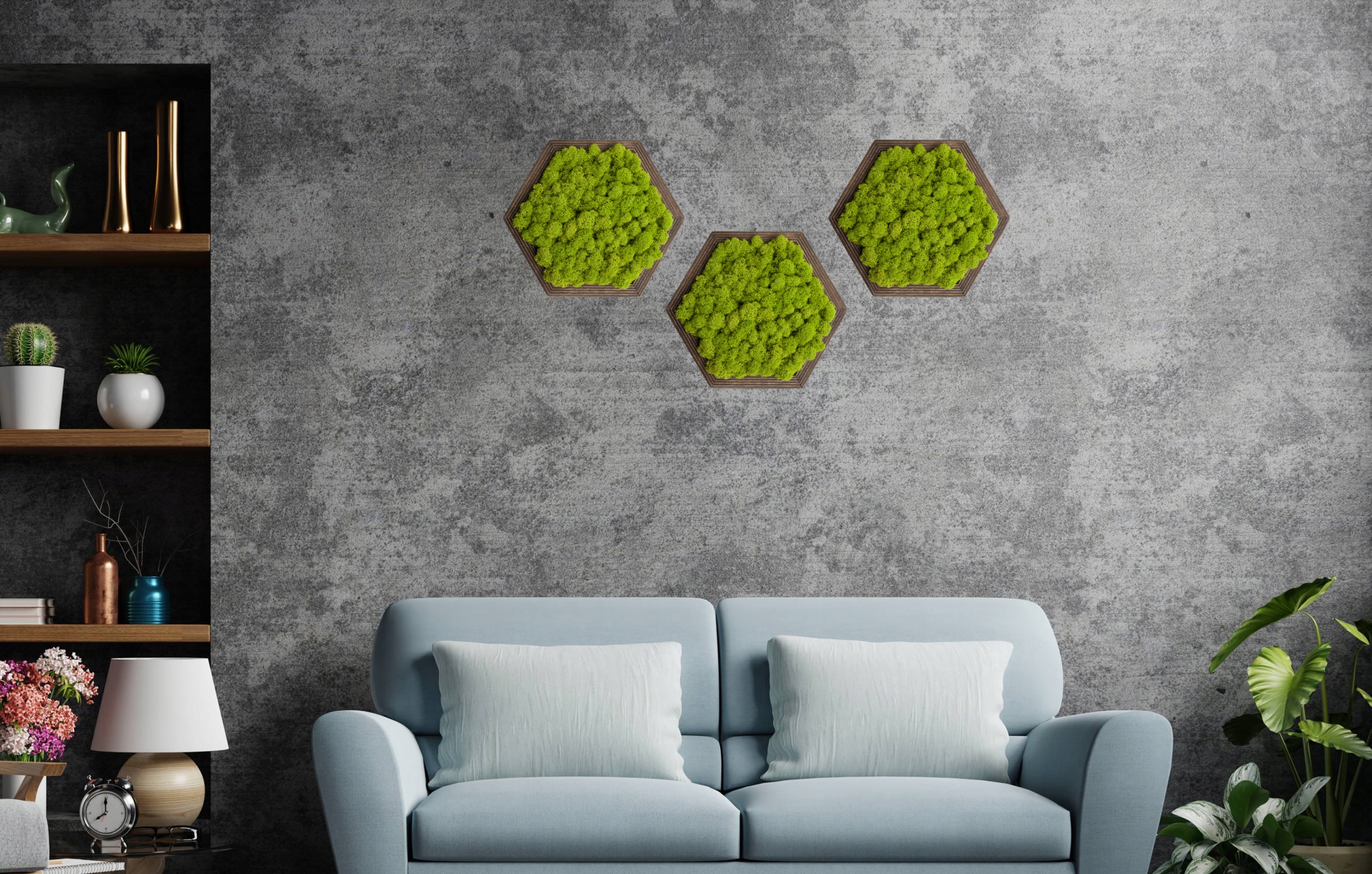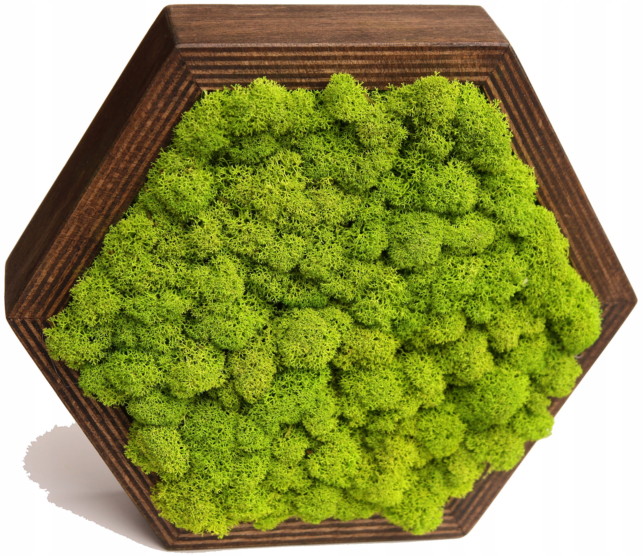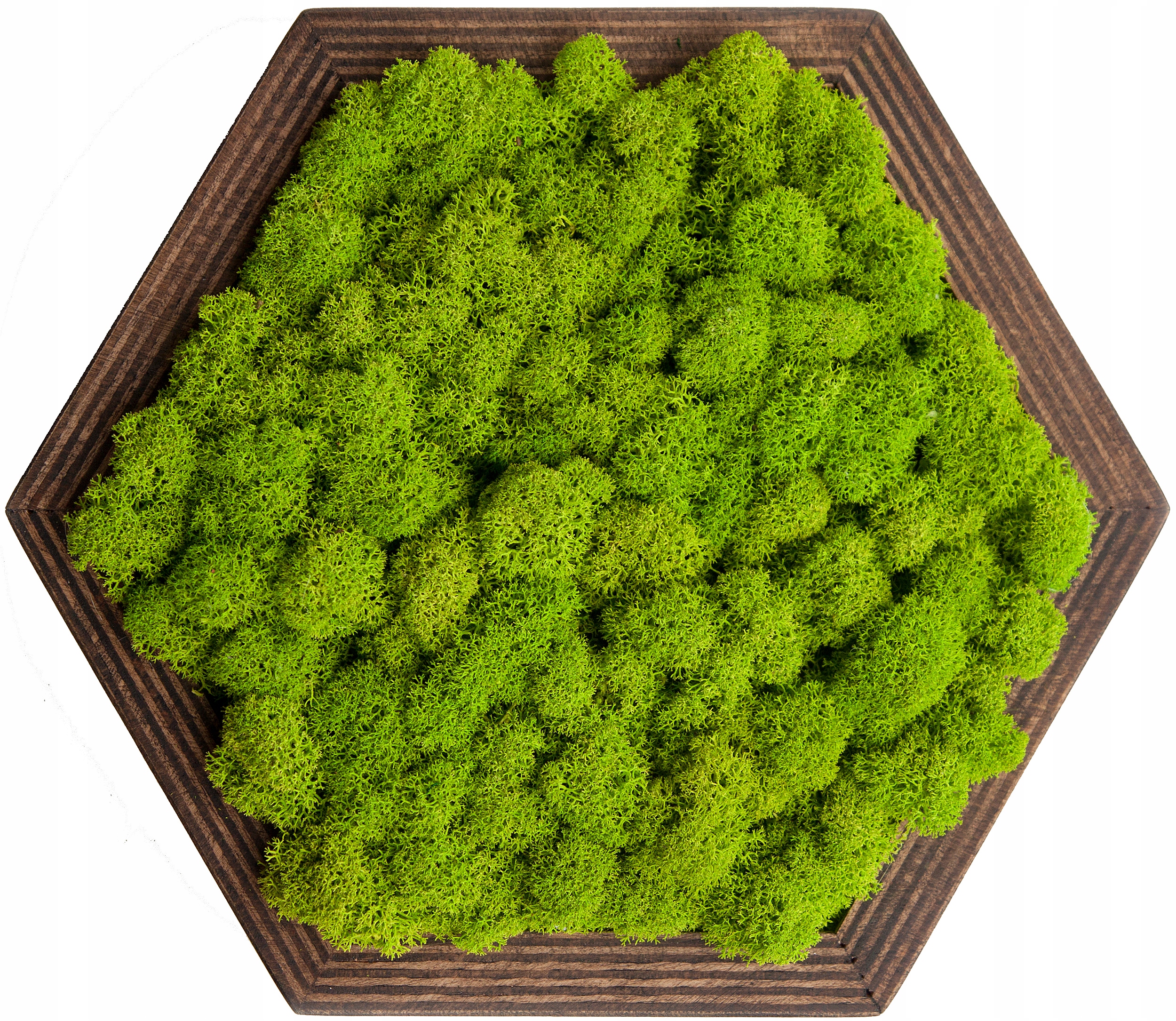100% НАТУРАЛЬНАЯ КАРТИНА ИЗ Оленьего МХА В ДЕРЕВЯННОЙ ВОЩЕНОЙ ШЕСТИУГОЛЬНОЙ РАМЕ