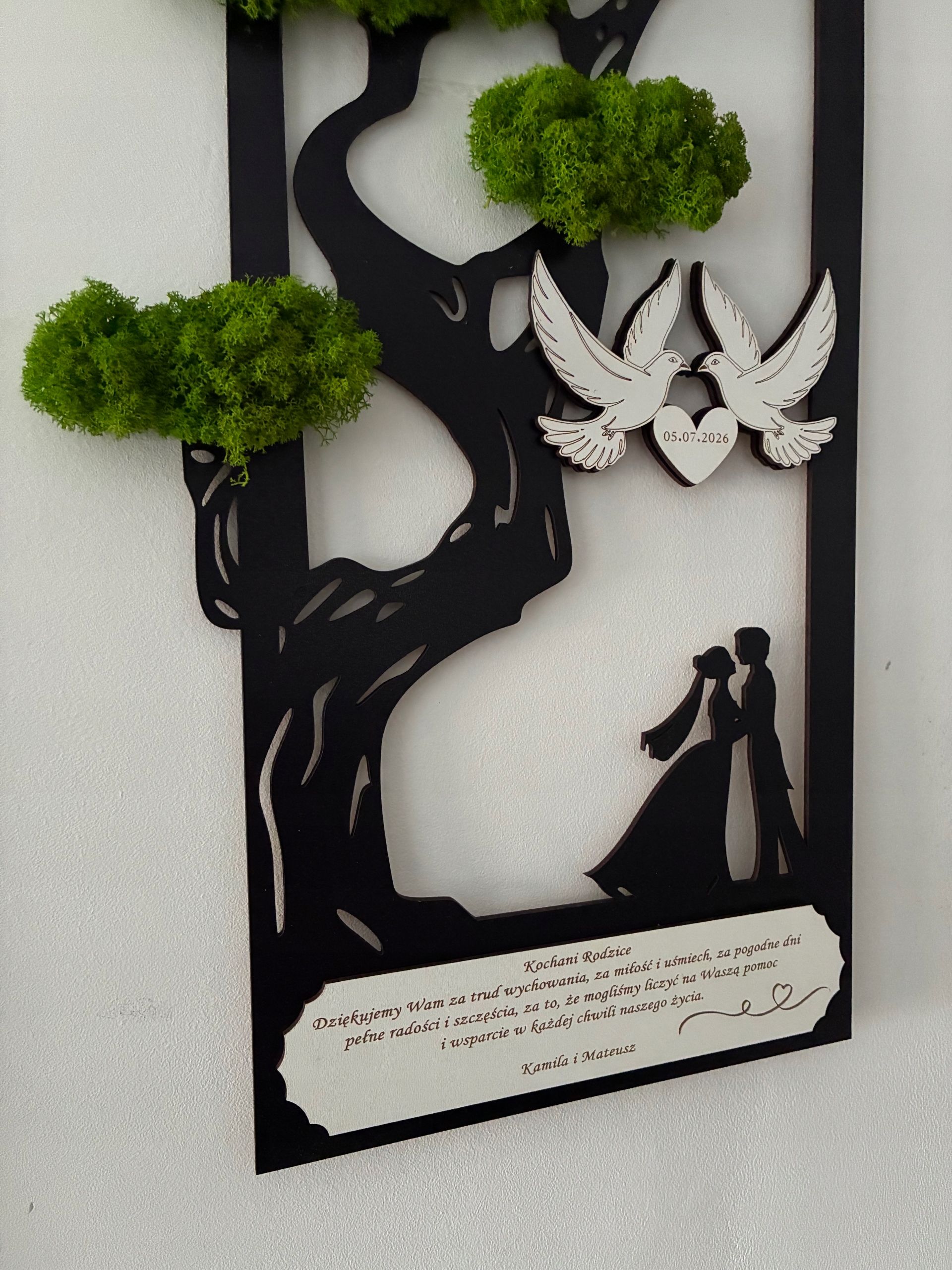 МОСС КАРТИНА ЖИВАЯ ГОДОВЩИНА СВАДЬБЫ на стене ПЕРСОНАЛИЗИРОВАННЫЙ мох