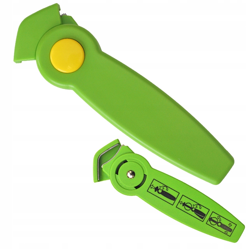 - Как пользоваться открывашкой: нажмите большую желтую кнопку на устройстве, чтобы выдвинуть верхнюю часть.