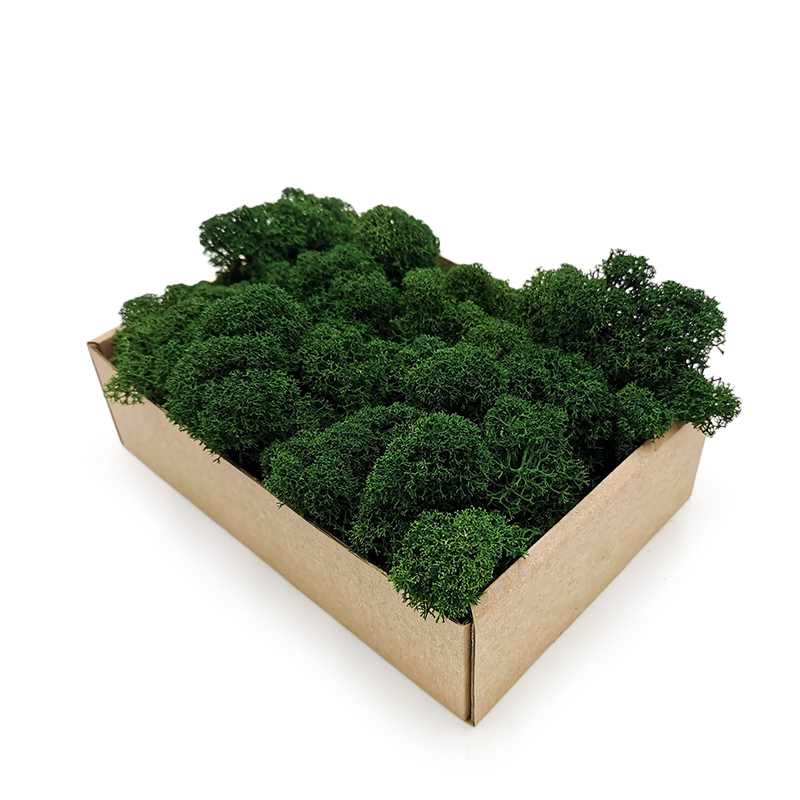 Олений мох, стабилизированный, подготовленный. Процессы стабилизации и подготовки позволяют ему сохранять первоначальный вид и мягкость, а красители придают ему цвет бутылки, очень приятный для глаз, прекрасно освещающий помещения и современные «бетонные» интерьеры, создавая впечатление общения с природой. Наш стабилизированный мох поставляется из Финляндии, очищен и содержит лишь незначительное количество хвои и других примесей природного происхождения.