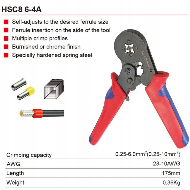 Приспособление необходимо для установки кабельных наконечников, гильз и разъемов. Будет использоваться при проведении всех электромонтажных и электромонтажных работ. Рабочий диапазон обжима составляет 0,25–10,0 мм2.