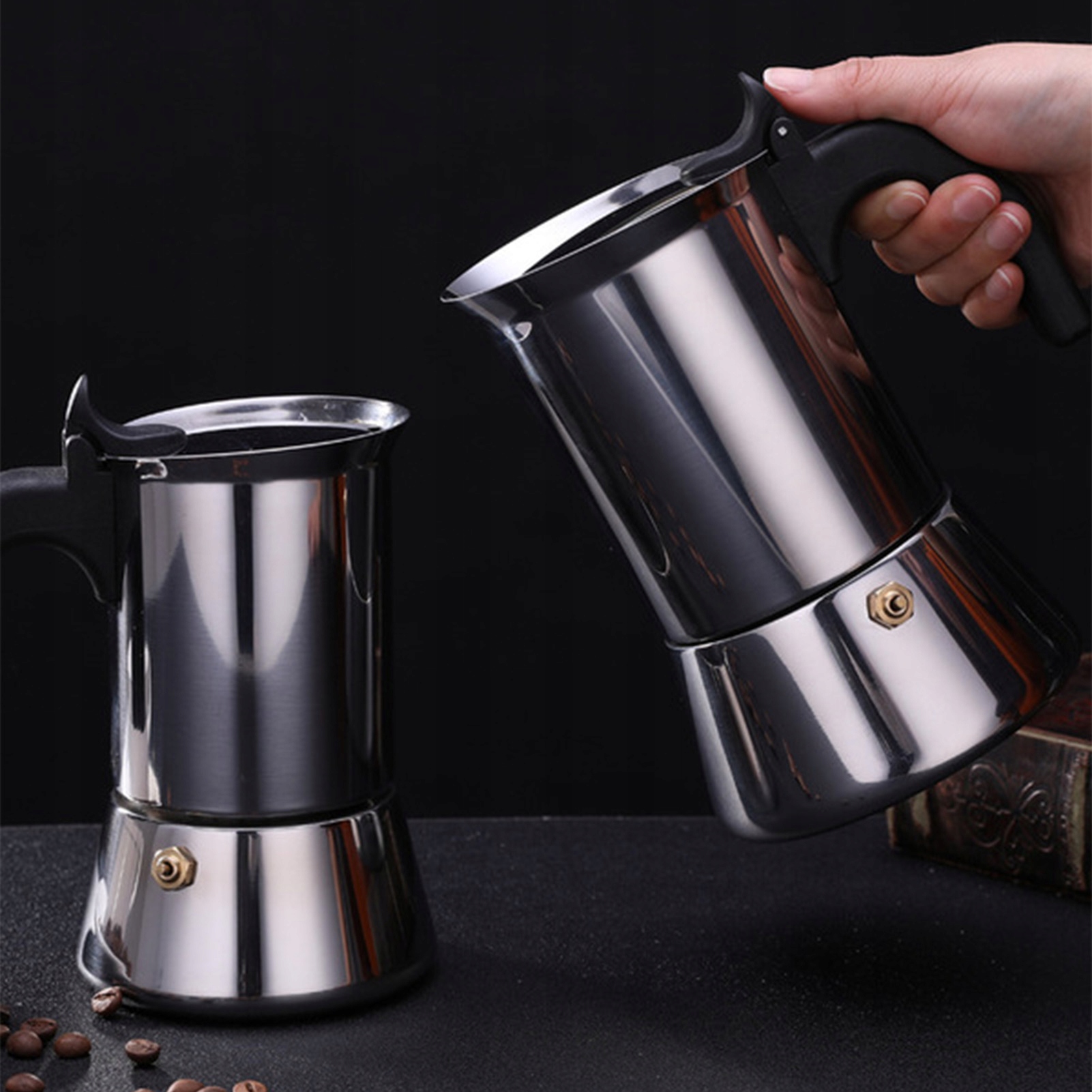 3. Монстр из нержавеющей стали: кофеварка изготовлена из нержавеющей стали, долговечна и имеет нетоксичную внутреннюю часть, которая подходит для большинства источников тепла, включая газовые, керамические или электрические плиты.