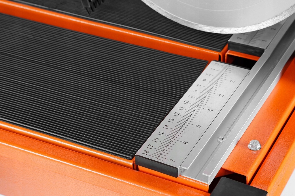 Поверхность рабочего стола покрыта прочным противоскользящим материалом, что значительно облегчает удержание материала в правильном положении и тем самым обеспечивает точность резки. Мощный двигатель и большой диск позволяют фрезе справляться даже с самыми требовательными материалами.