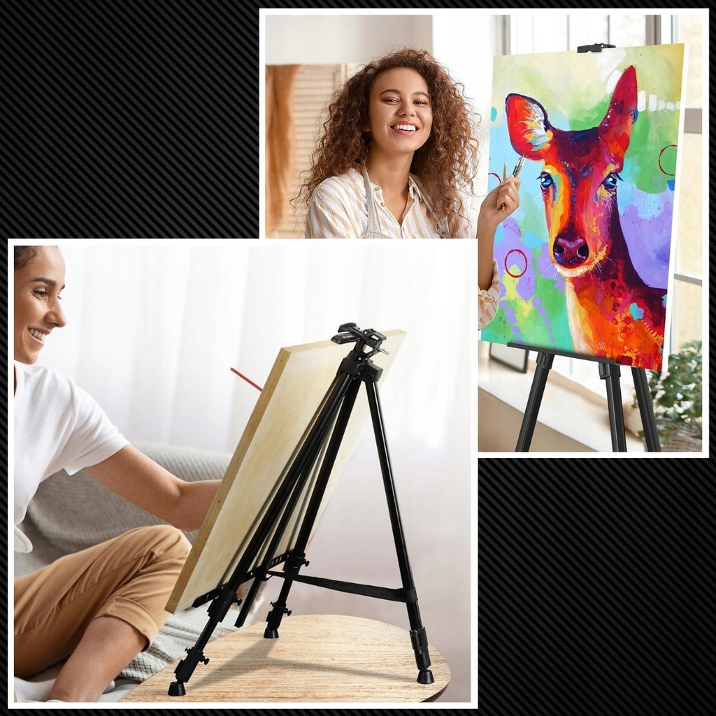 Устойчивость: Самовыравнивающиеся нескользящие ножки обеспечивают устойчивость даже на неровной поверхности. Это означает, что вы можете работать на открытом воздухе, не беспокоясь о том, что мольберт сдвинется или трясется холст.