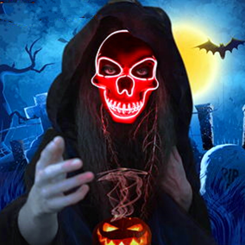 Развлечение для всех возрастов. Свежая и привлекательная, технологично светящаяся маска идеально подходит для вечеринок, рейвов, дискотек, клубов, Хэллоуина, дней рождений, Рождества, Пасхи, Нового года. Она очень универсальна, просто купите страшную светящуюся маску, ее можно использовать круглый год и она будет самой привлекательной на всех вечеринках.