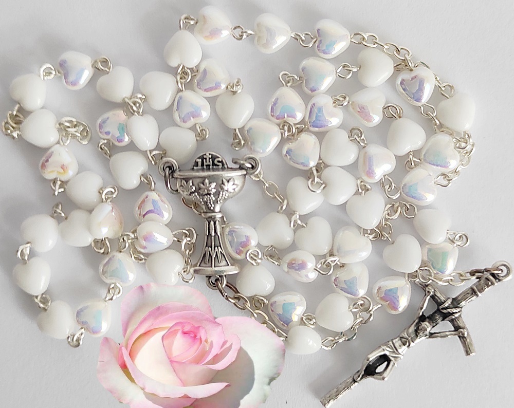 КРАСИВЫЕ ЧЕТКИ ДЛЯ ПРИЧАСТИЯ — БЕЛЫЕ РАДУЖНЫЕ СЕРДЦА — В КОРОБКЕ В Форме КНИГИ + МОЛИТВЕННИК С ЗАМЕЧАТЕЛЬНЫМИ ФОТОГРАФИЯМИ ВНУТРИ