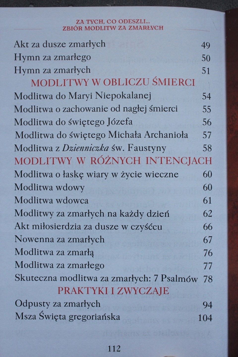 - Молитвы на различные намерения, напр. Овенна по усопшим, акт милосердия по душам в чистилище...