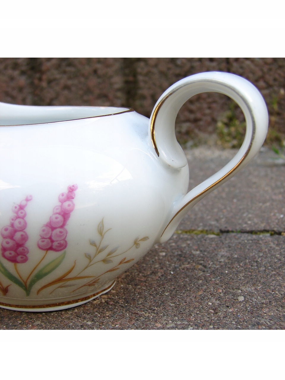 Млечко из фарфора, украшенное мотивом полевых цветов, ободки украшены старинным золотом.