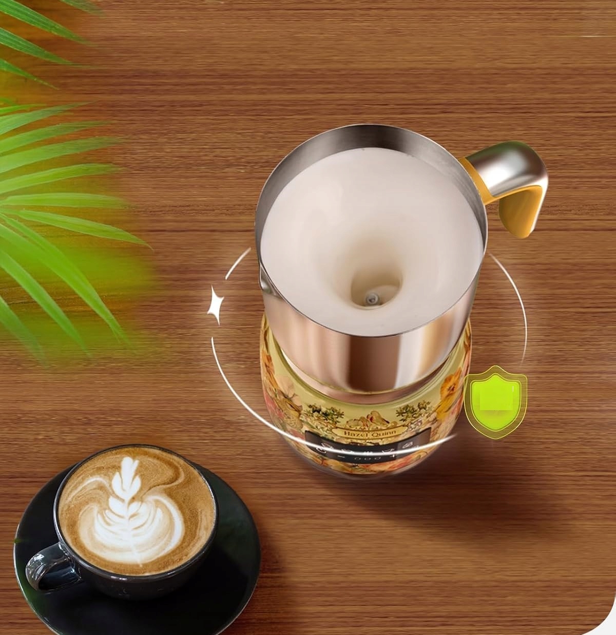 - 5 Универсальные функции - Поднимите уровень вашего опыта пены благодаря Hazel Quinn Electric Milk Froother, наслаждаясь декадатом горячего шоколадного режима. Создание идеальной пены никогда не было таким приятным!