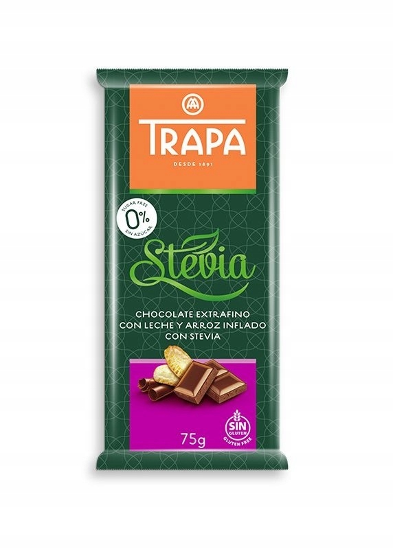 МОЛОЧНЫЙ ШОКОЛАД СО СТЕВИЕЙ ХРУСТЯЩИЙ БЕЗ ГЛЮТЕНА И САХАРА ТРАПА 75 ГРАММ