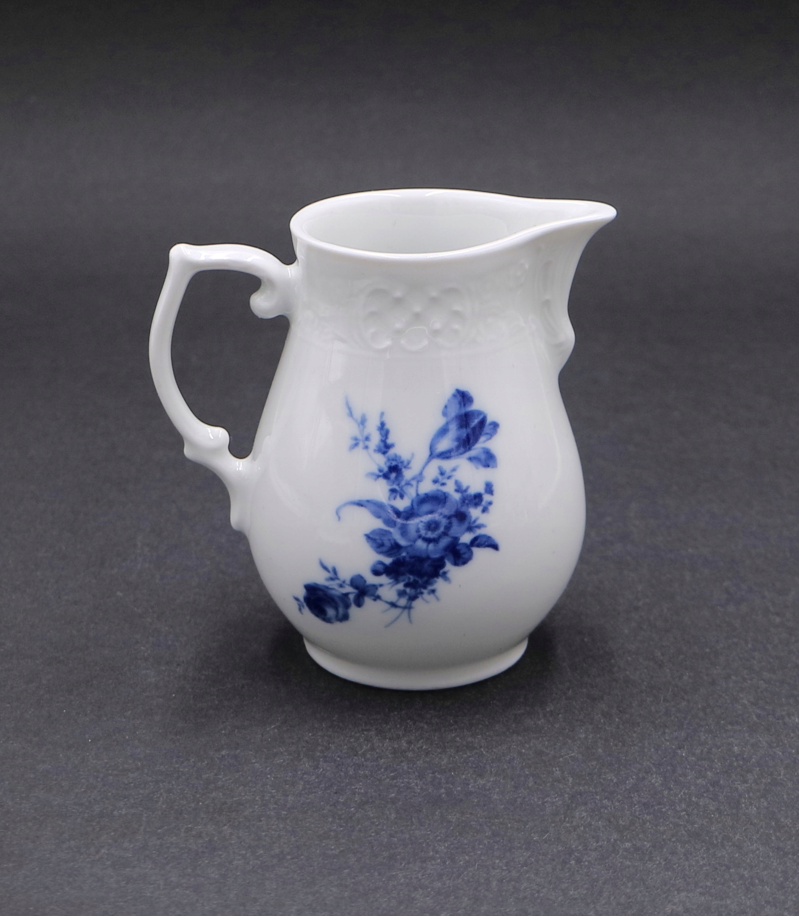Белый фарфор, украшенный кобальтово-синим цветочным мотивом.