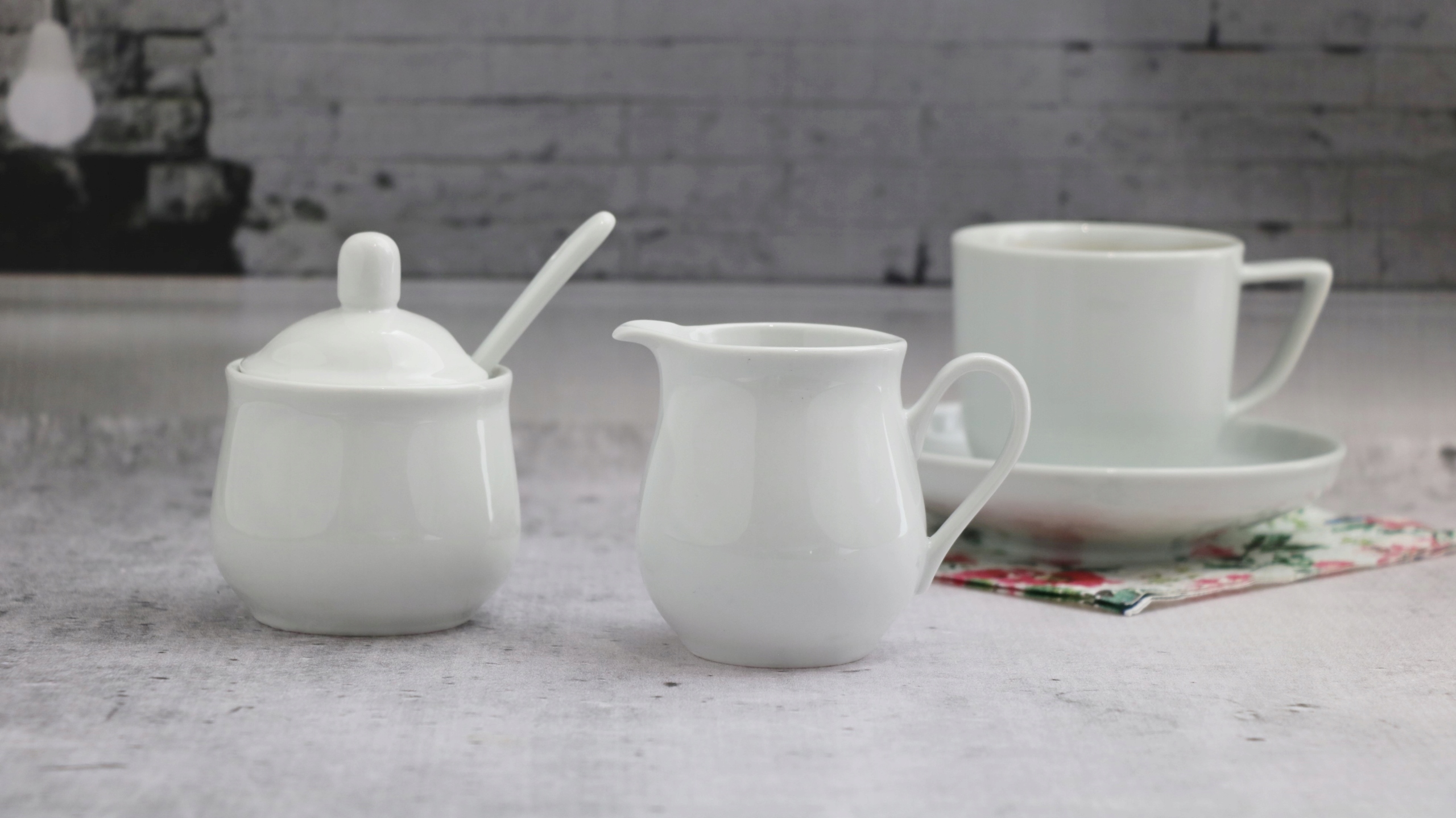 НАБОР МОЛОЧНИК+КУВШИН+САХАРНИЦА С ЛОЖКОЙ ФАРФОР БЕЛЫЙ