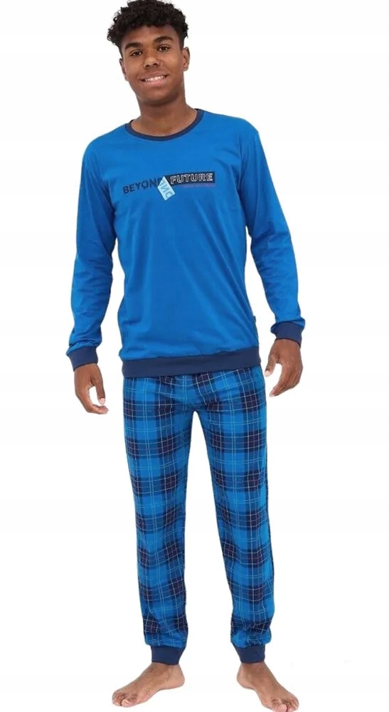 Молодежные пижамы для мальчиков от польского производителя, бренд CORNETTE. Изготовлен из здорового, приятного к телу хлопка. Обеспечивает максимальный комфорт во время вечернего отдыха и сна. Идеально подходит для осенне-зимнего сезона благодаря материалу и крою. Комплект состоит из двух элементов: темно-синей блузки с нежной надписью и длинными рукавами и темно-синих длинных брюк на эластичном поясе. Пижама свободно сидит на теле, приятный материал позволяет коже дышать, обеспечивая здоровый и безопасный сон, штанины и рукава отделаны удобными манжетами.