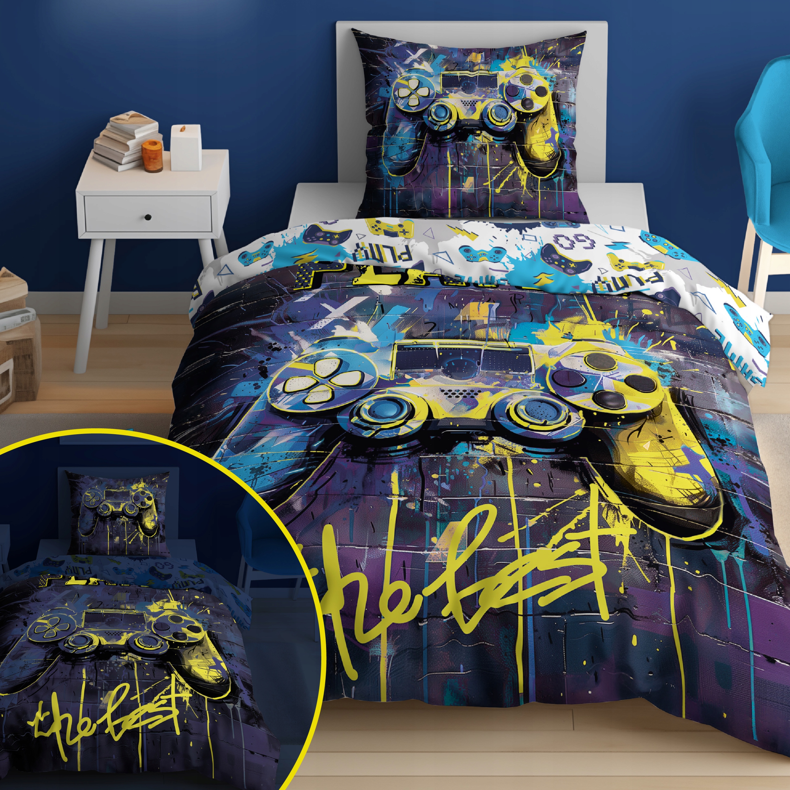 Этот сенсационный набор постельных принадлежностей будет оценен каждым небольшим поклонником компьютерных игр! Изготовленный из 100% хлопка, он имеет красивую красочную графику с игровым мотивом. Дети будут спят, засыпая под такими постельными принадлежностями, а ночь, проведенная в мире игр, безусловно, будет регенерировать, давая энергию на еще один активный день! Кроме того, яркие, насыщенные цвета не спорят, поэтому набор в течение длительного времени украсит спальню малышей.