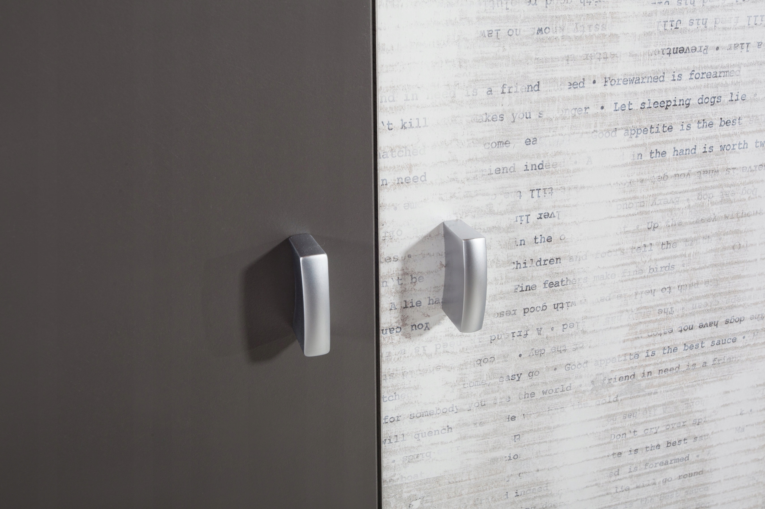 Комплект мебели ТИМОН объединен в несколько модных цветов ГРАФИТ + БЕЛЫЙ + АТЛАНТИК или ГРАФИТ + ЭНГИМА.