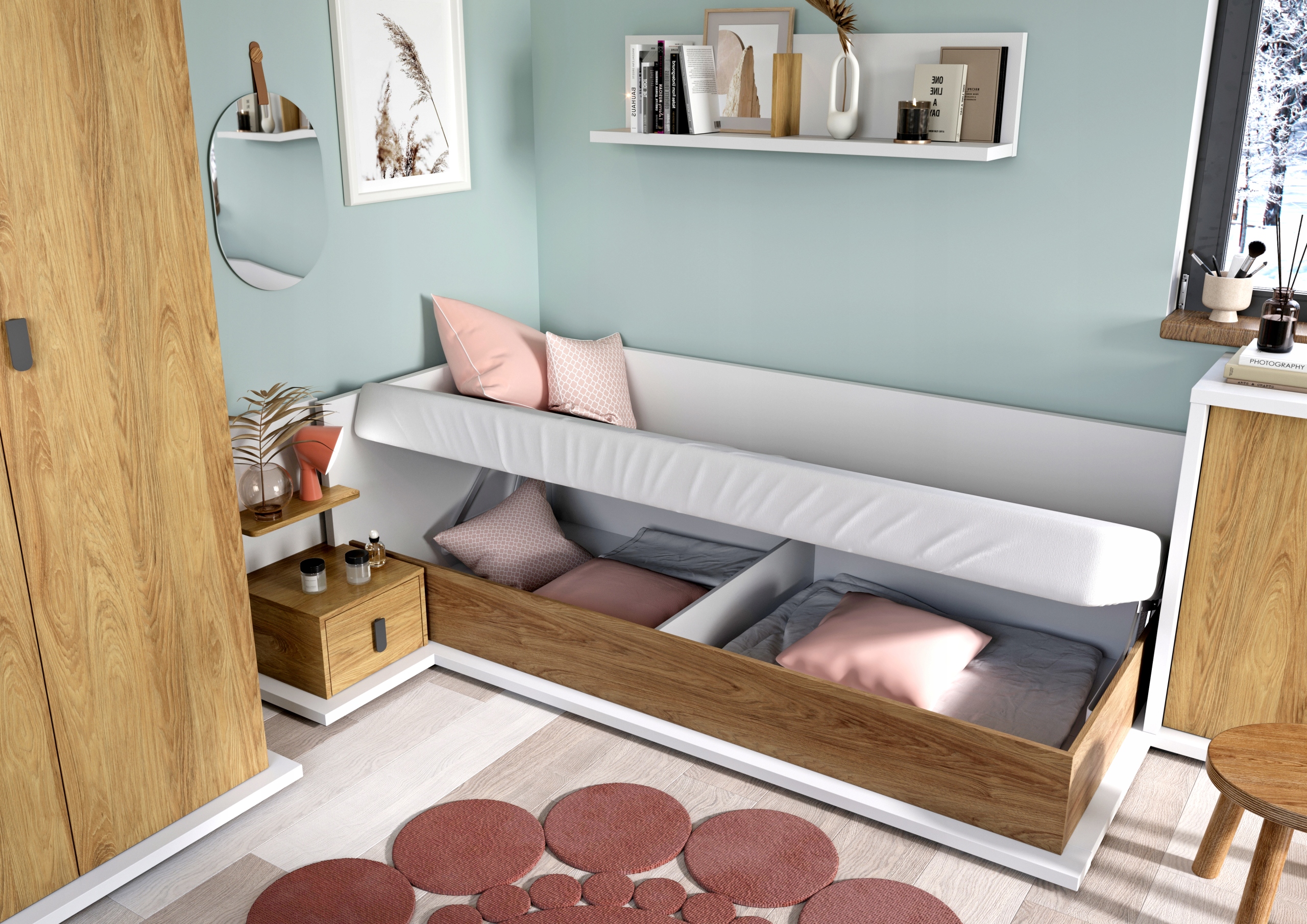 МОЛОДЕЖНАЯ мебель ХИКОРА шкаф-кровать БОХО книжный шкаф