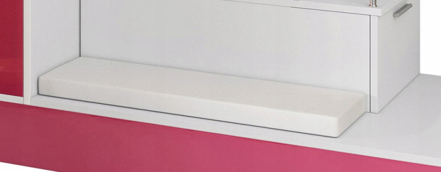 Корпус кровати изготовлен из устойчивого к царапинам белого ламината толщиной 16 мм. Верхняя направляющая проходит по всей длине кровати.