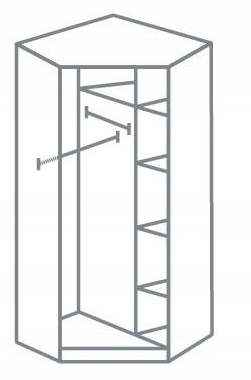 - Интерьер:в шкафу с правой стороны четыре полки, а перед ним две штанги для вешалок, полка вверх