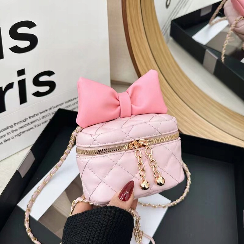 Красивый розовый кошелек для девушки с стеганым узором и очаровательным луком. Кошелек маленький, но идеально подходит для мелочей - он отлично подходит для особых случаев, а также для повседневного веселья.