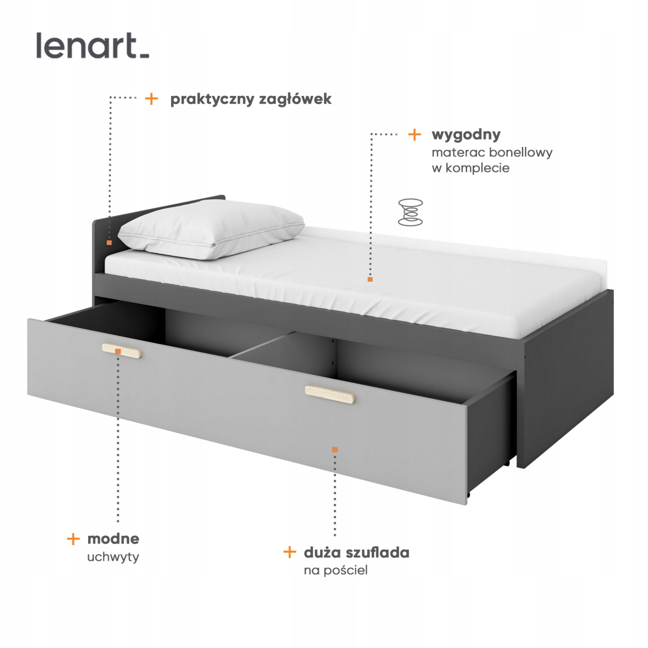 Функциональная модель кровати 2 в 1 оснащена верхним матрасом Bonnell и очень вместительным выдвижным ящиком на колесиках.