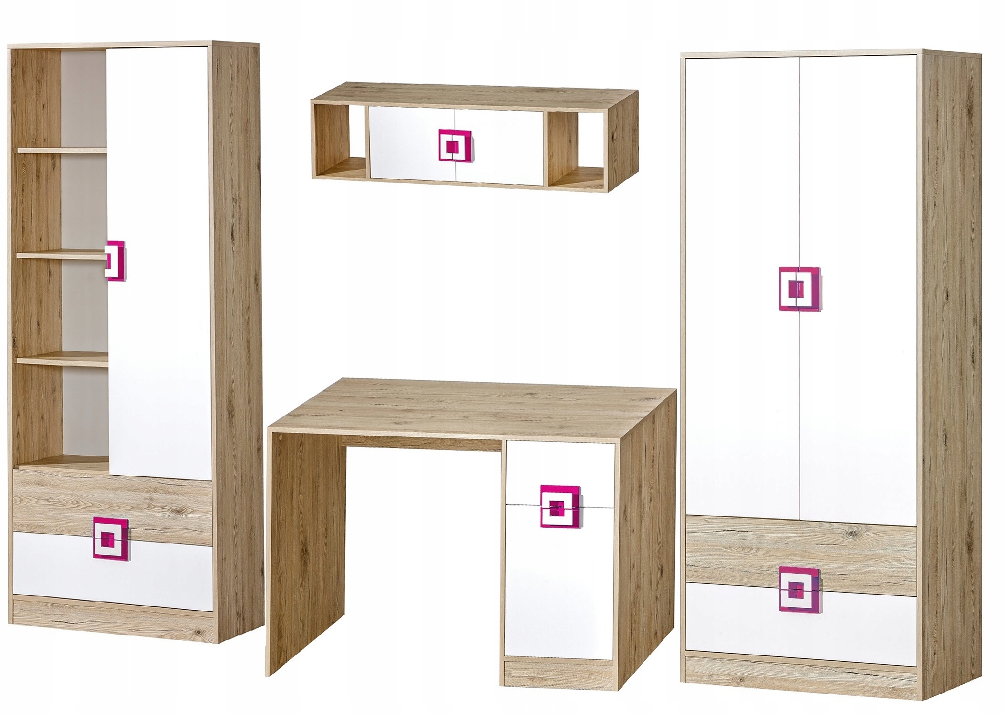 - светлый дуб + белый + розовый