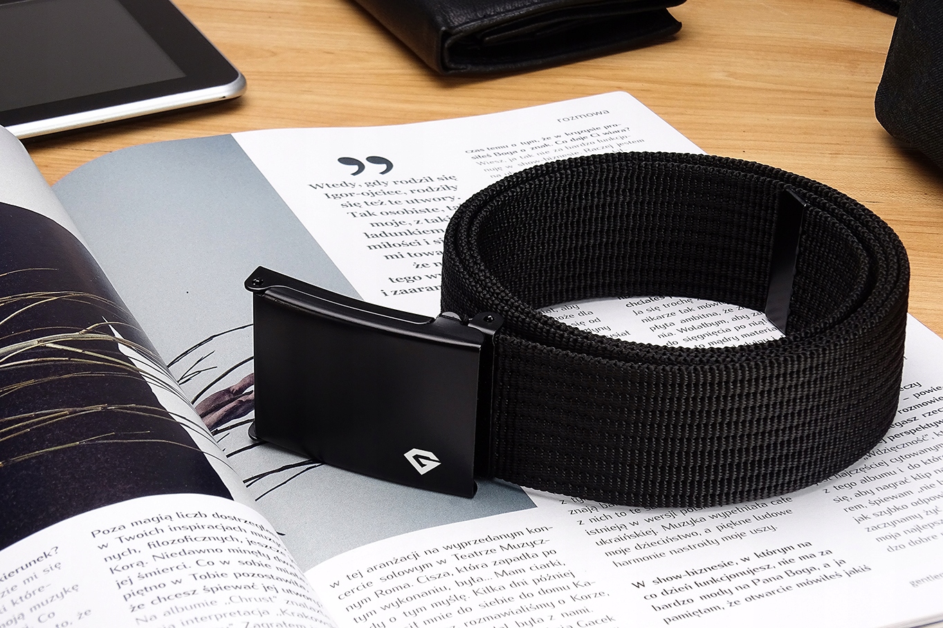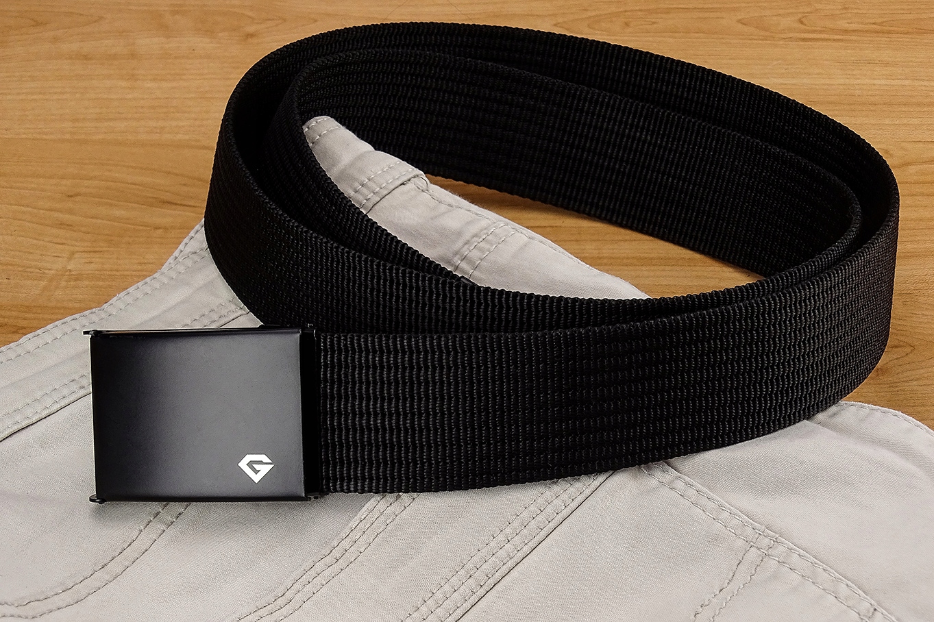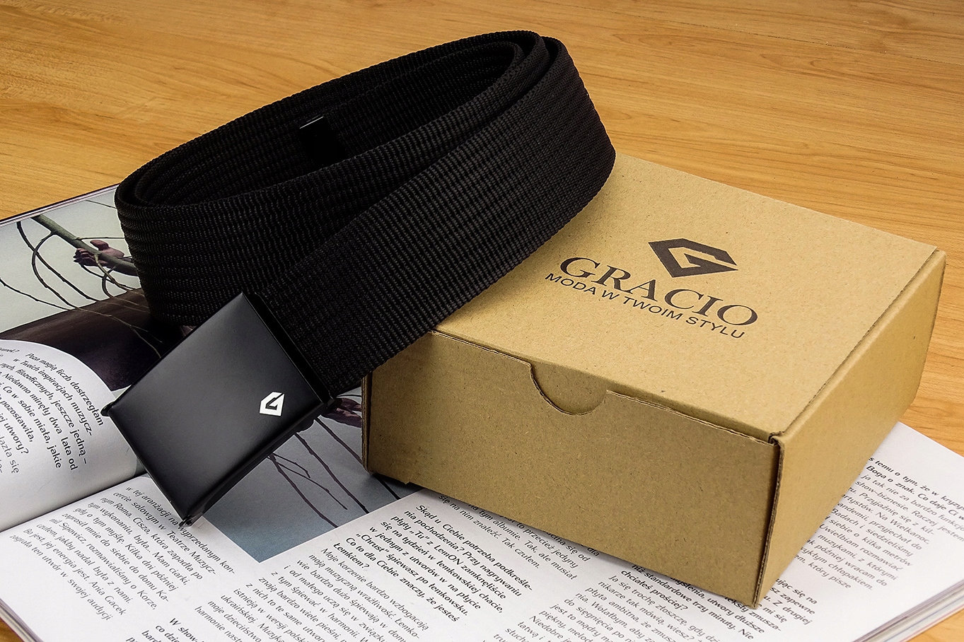 Черный мужской брючный ремень, повседневный -Gracio@ Webbing, однотонный