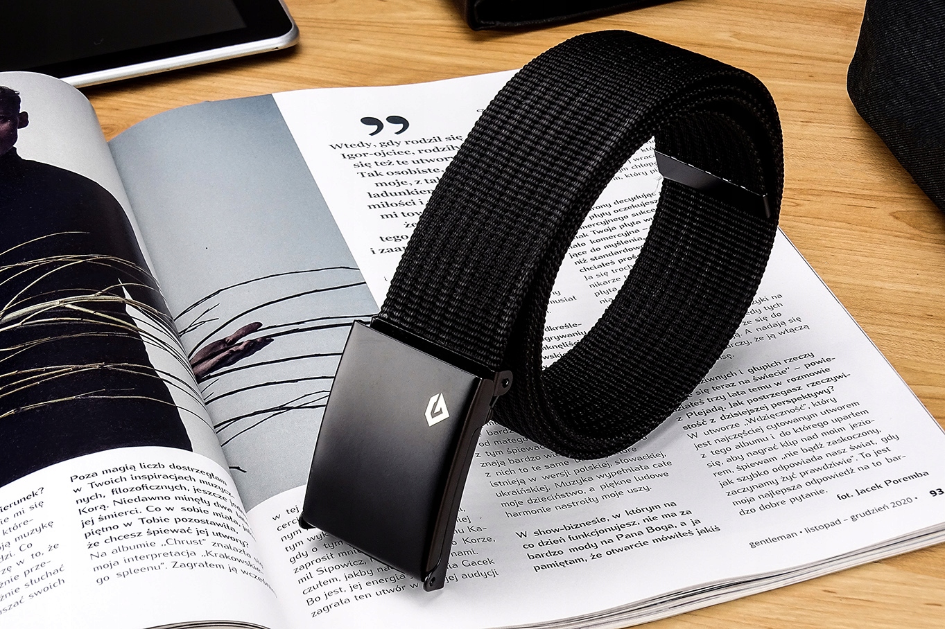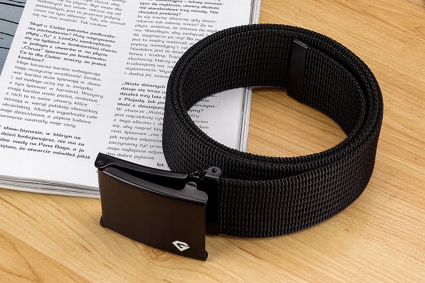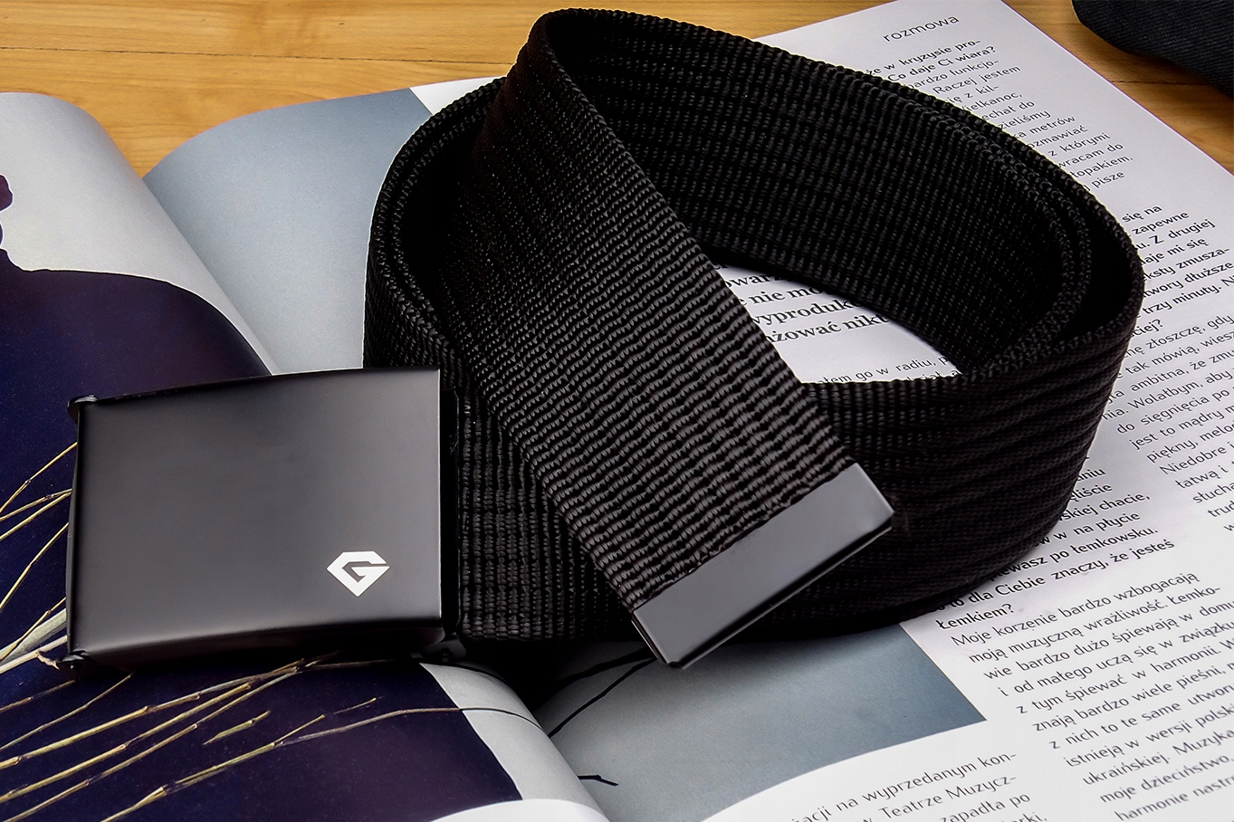 Черный мужской брючный ремень, повседневный -Gracio@ Webbing, однотонный
