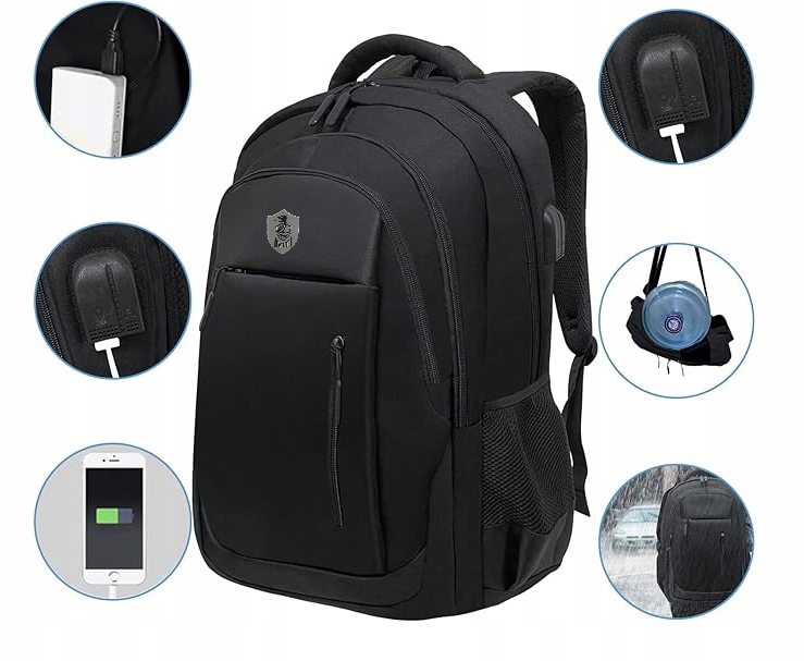 ШКОЛЬНЫЙ РЮКЗАК ДЛЯ МОЛОДЕЖИ, ВОДОСТОЙКИЙ, МНОГОКОМПЛЕКТНЫЙ ГОРОДСКОЙ НОУТБУК USB, ЧЕРНЫЙ