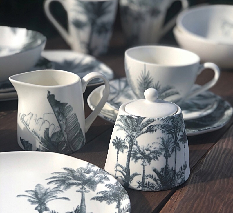 Красивый комплект молочник и сахарница из фарфора из коллекции TROPICAL от Affek Design.