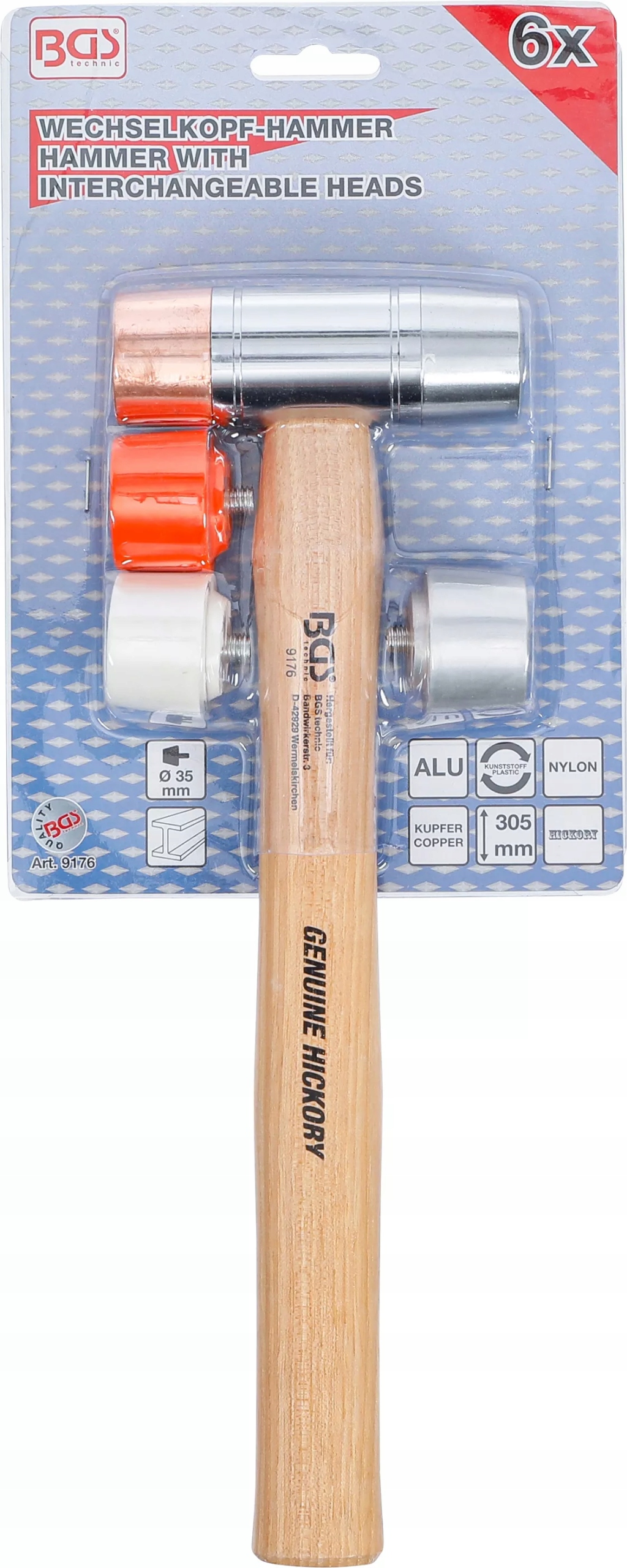 Молоток со сменной головкой Ø 35 мм, рукоятка из гикори, BGS 9176