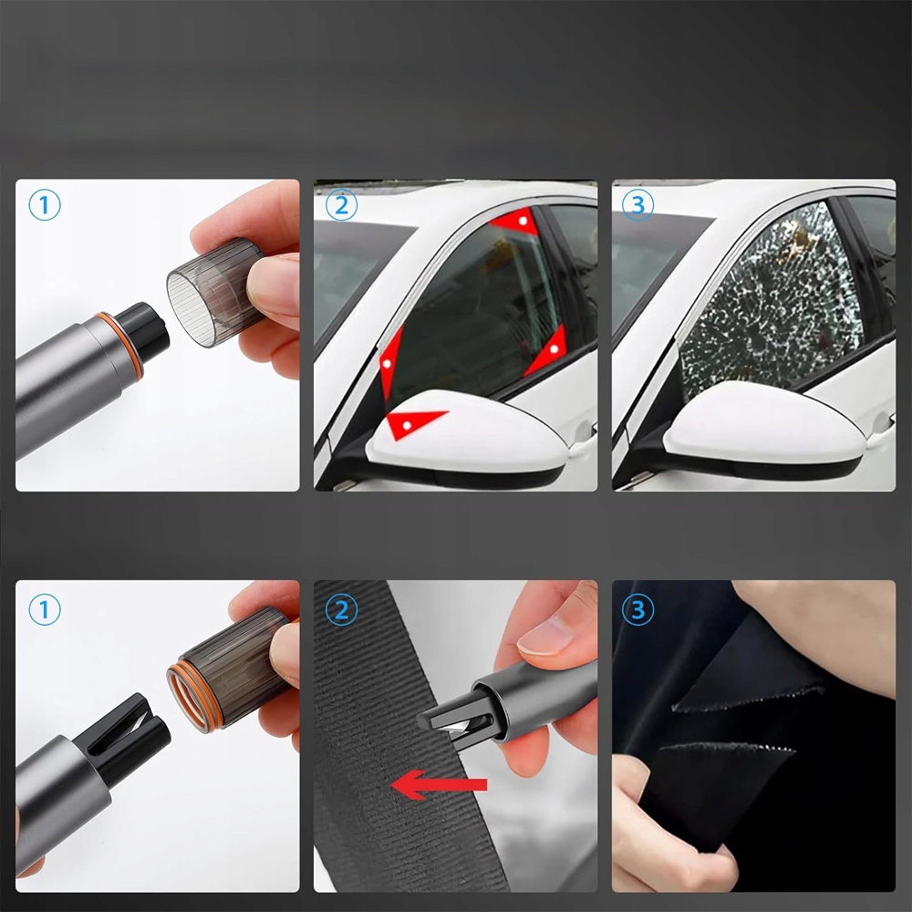 【Набор из 2 штук, двойная защита】 👨‍👩‍👧‍👦 В комплект входят два аварийных инструмента, которые можно удобно разместить рядом с сиденьями водителя и пассажира, обеспечивая защиту всех. Дополнительное спокойствие для вашей семьи и друзей – это необходимая мера предосторожности. ❤️