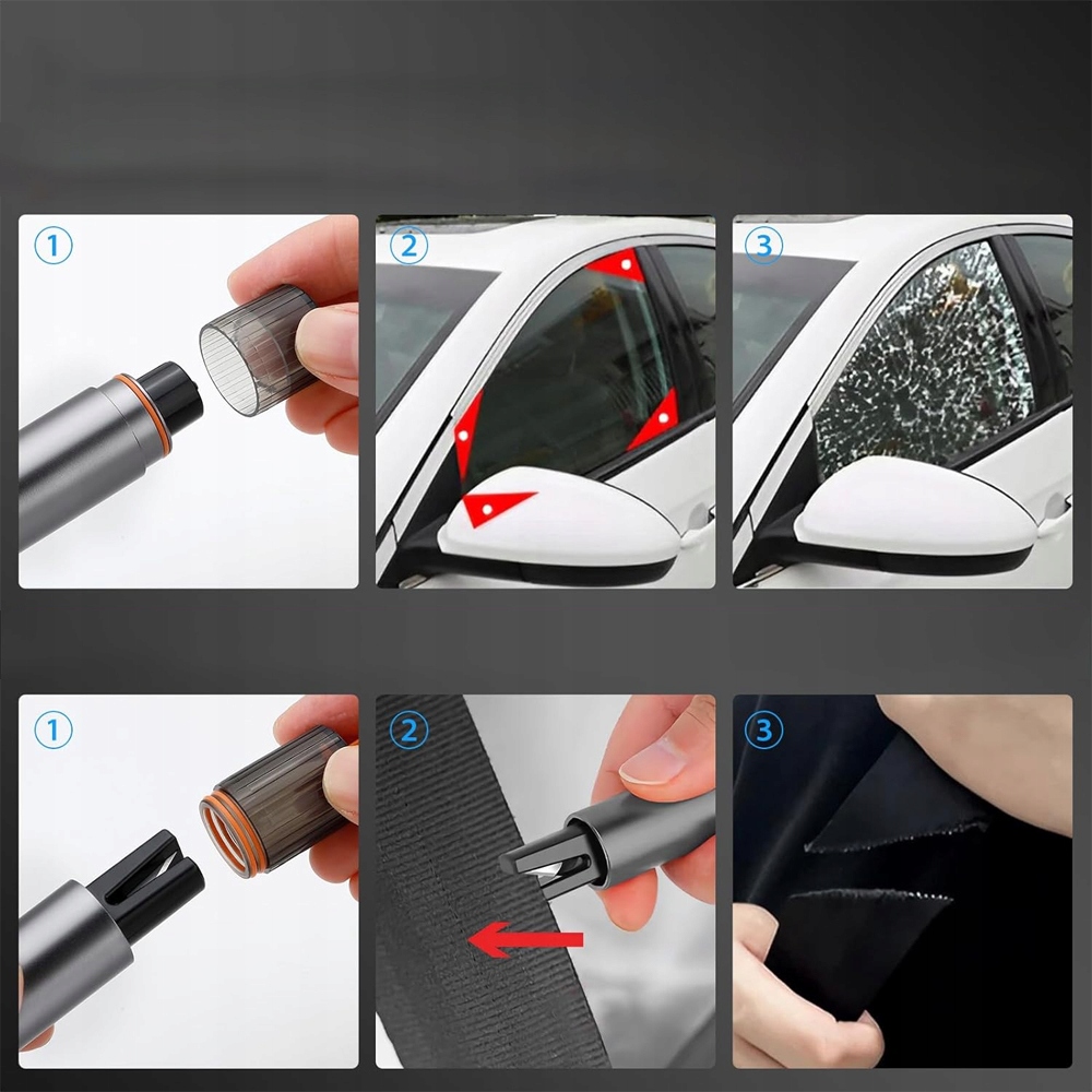 【Мгновенно разбивает стекло】 🚨 Этот автомобильный выключатель для окон имеет встроенную пружину высокого давления и вольфрамовую головку. Легкое давление мгновенно разбивает даже самое твердое автомобильное стекло. Он также работает под водой, давая вам драгоценное время для побега. 🔥💥