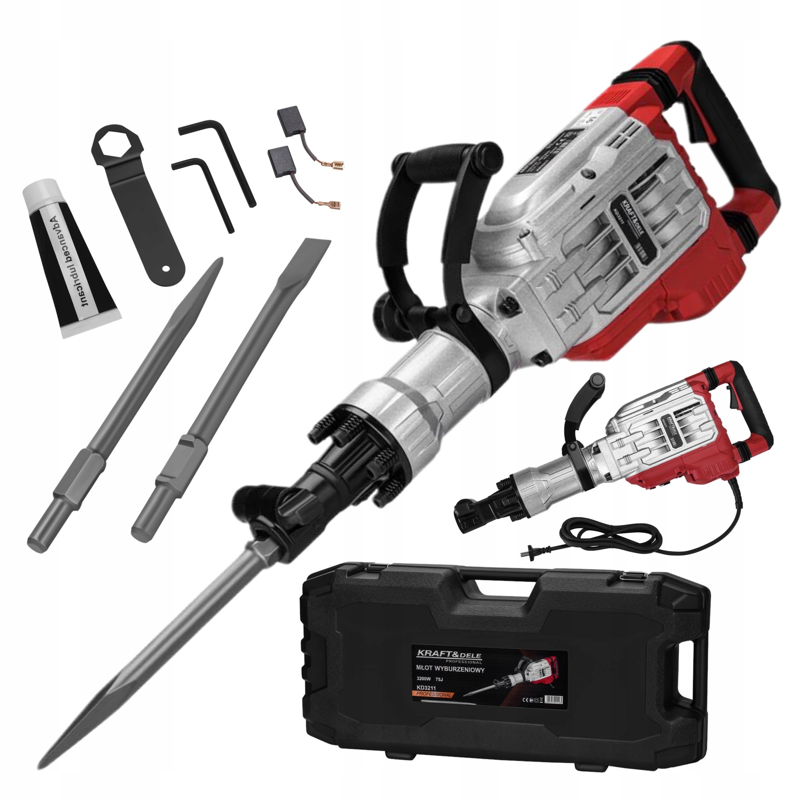 МОЛОТОК ДЛЯ Сноса 3200 Вт, 75J, ШЕСТИГРАННЫЙ ЧЕХОЛ + 2 зубила KRAFT&DELE KD3211