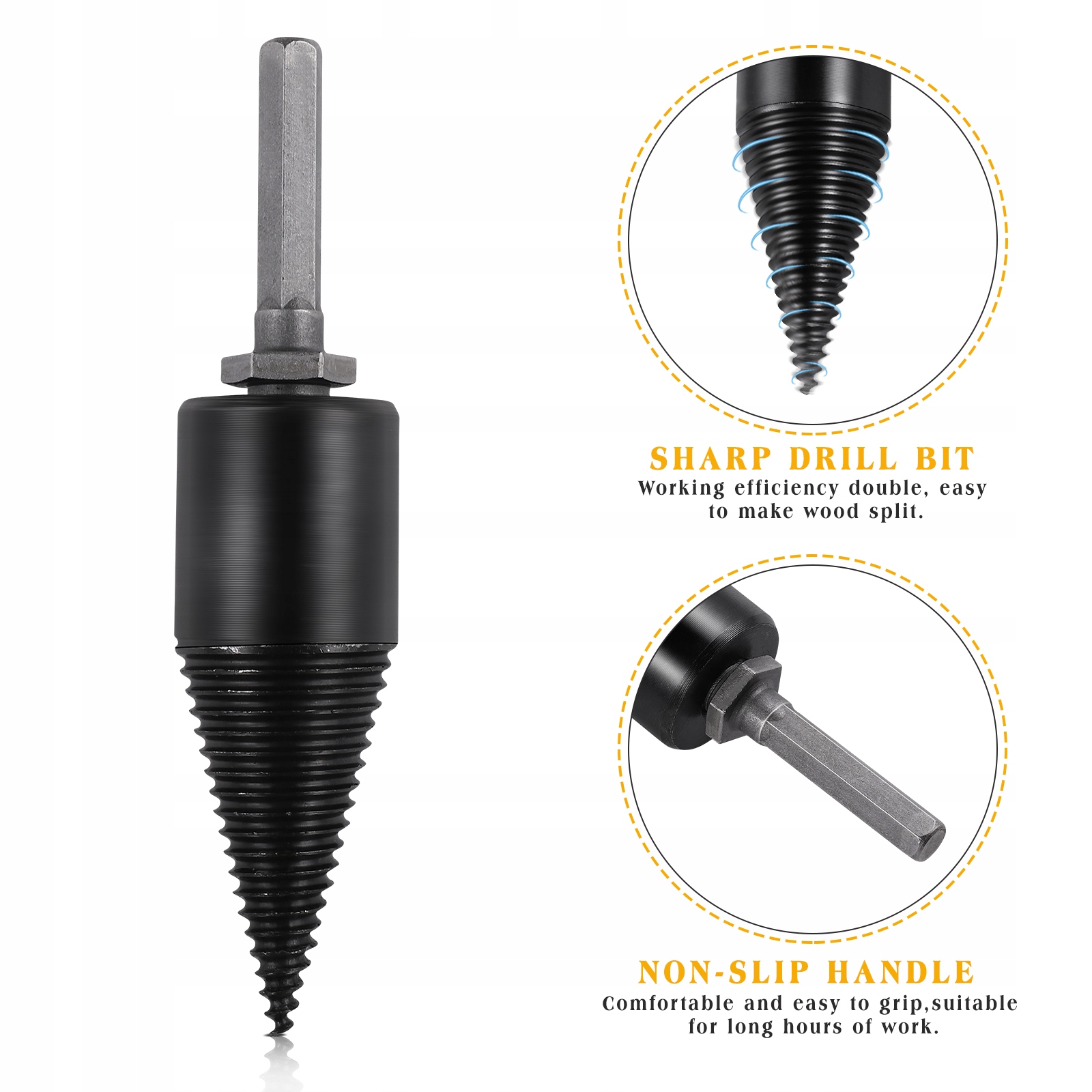 ✅Сверло высокой твердости и сверхпрочности изготовлено из прочной высокопрочной стали. дизайн, легко расколоть древесину, поэтому эффективность работы удваивается. Нескользящая ручка удобна в захвате, подходит для длительной работы, может использоваться с электрической, аккумуляторной или ударной дрелью.