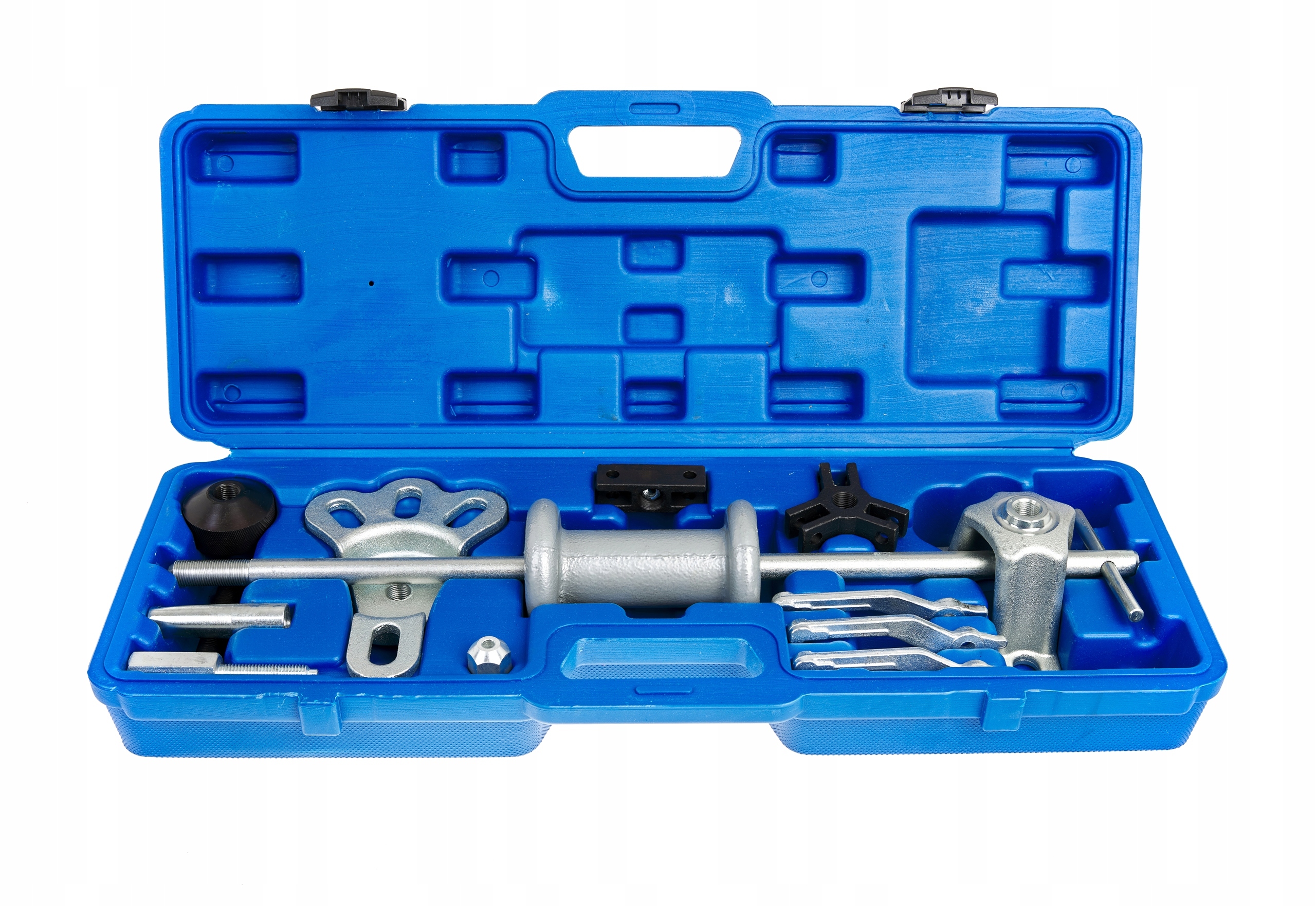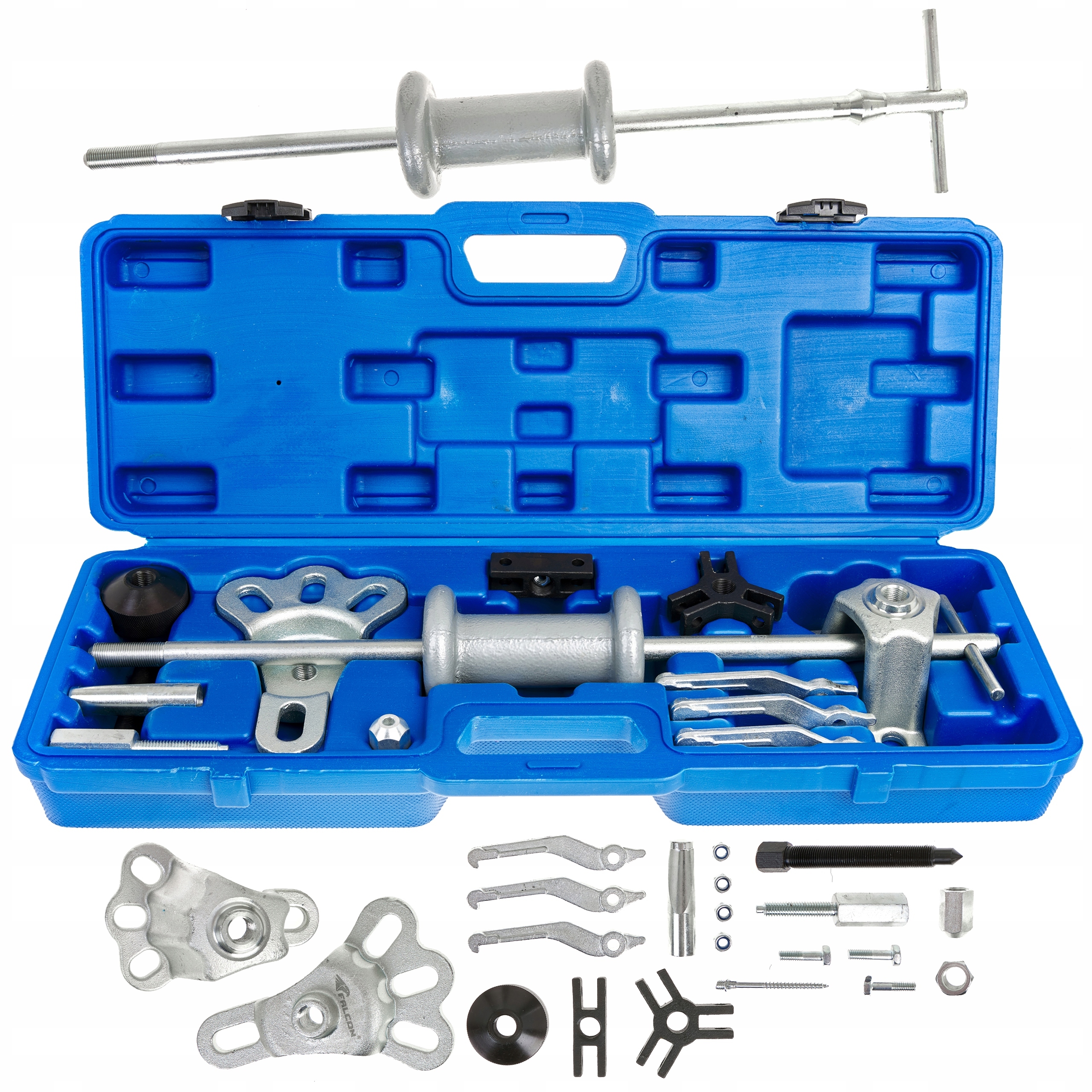 Профессиональный инерциальный листовый металл молоток. Это большой и универсальный. Посвященный ремонту тела, все мигающие работы, вытягивание беговых дорожек и других плотно встроенных деталей в едва доступных местах. Набор включает в себя различные типы захватов, избиения, сокращения и т. Д. В целом очень полезно в каждой мастерской. Хорошо -Целью, закаленная сталь