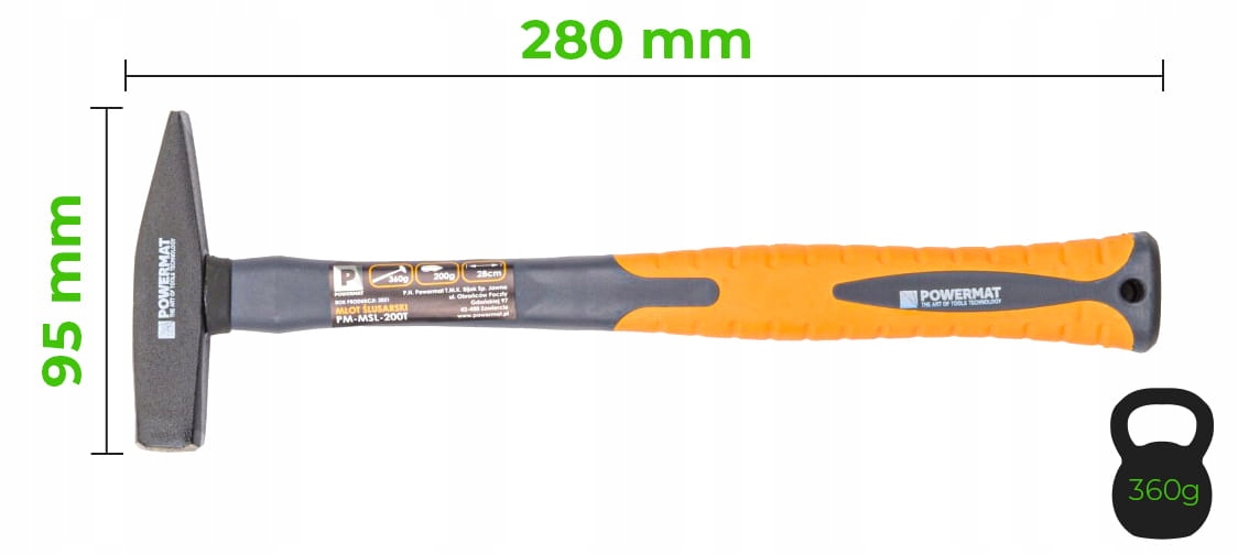 - ✔️Вес молотка: 360 г