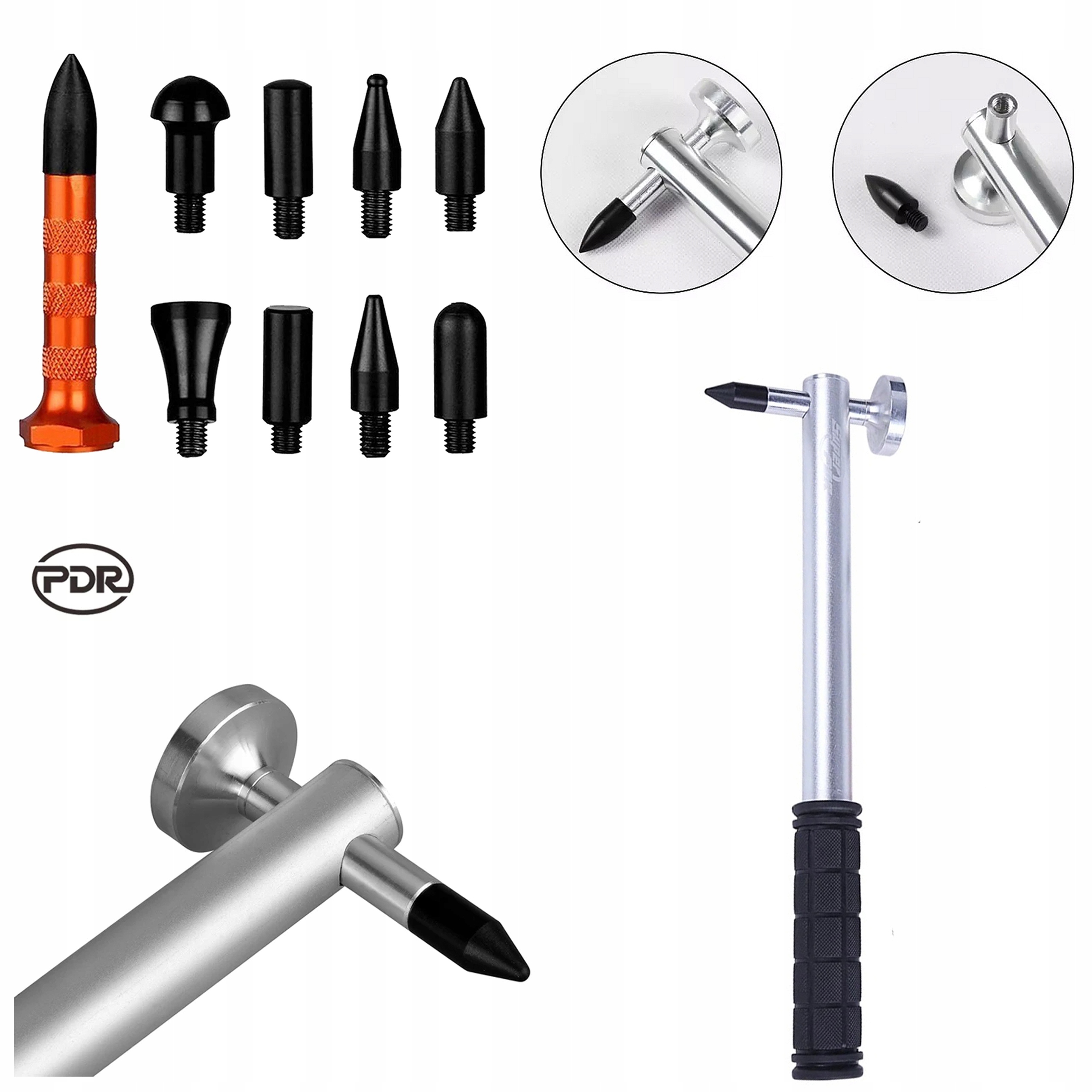Молоток по листовому металлу со сменными наконечниками и киянка — инструменты, предназначенные для точной обработки поверхностей тела. Очень важны сменные головки молотка различной твердости. на завершающем этапе ремонта. Используя инструменты PDR для удаления вмятин, вы сохраните исходную краску и не останется никаких следов повреждений. Каждый инструмент этого типа можно использовать для устранения вмятин, вызванных градом, повреждениями при парковке, легкими ударами и вандализмом. Тампер позволяет прижимать и выравнивать «бугры», образовавшиеся при слишком интенсивном вытаскивании вмятин.