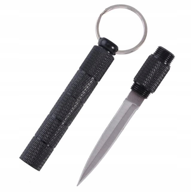 НОЖ, СКРЫТЫЙ В АЛЮМИНИЕВОЙ РУЧКЕ, ДВУХСТОРОННЕЕ ЛЕЗВИЕ, КИНЖАЛ, КУБОТАН, БРЕЛОК
