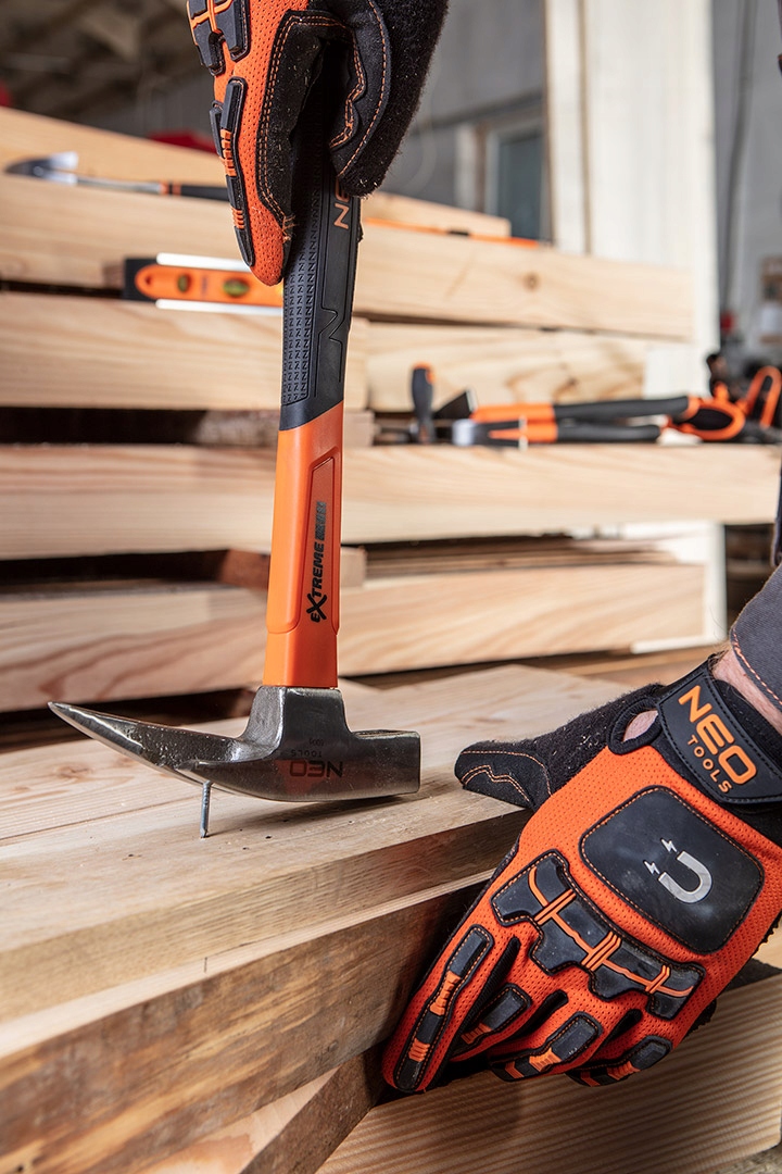 Столярный молоток NEO (арт. 25-131) массой 600 г, предназначенный преимущественно для точного забивания гвоздей. Ручка изготовлена из стекловолокна – материала, чрезвычайно устойчивого к перепадам температур, влаге и механическим повреждениям, что очень важно при работе в мастерской. Прорезиненная ручка эргономичной формы обеспечивает высокий комфорт работы. Головка выкована из высококачественной углеродистой стали, что обеспечивает высокую твердость поверхности. Надежность продукта гарантирована сертификатом TÜV Rheinland, а качество изготовления соответствует немецкому стандарту DIN 7239. Бренд NEO оправдывает ожидания профессионалов.