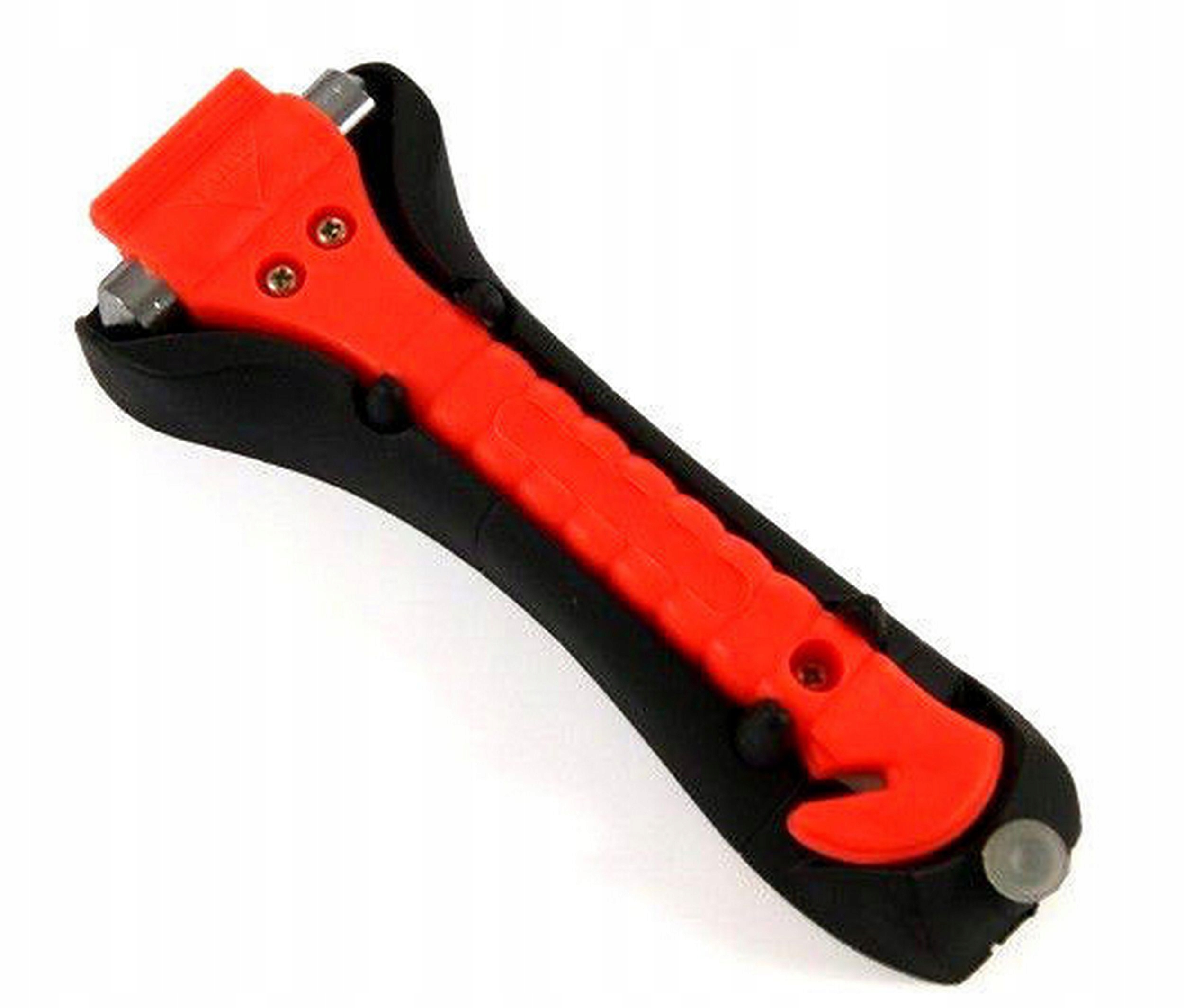 Молоток с ножом для перерезания ремней безопасности. В комплект входит ручка.