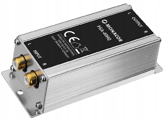 HI-END массовый сепаратор Monacor FGA-40HQ используется для устранения помех и жужжаниесвязано с замыканием на землю при подключении автомобильной магнитолы к усилителю.