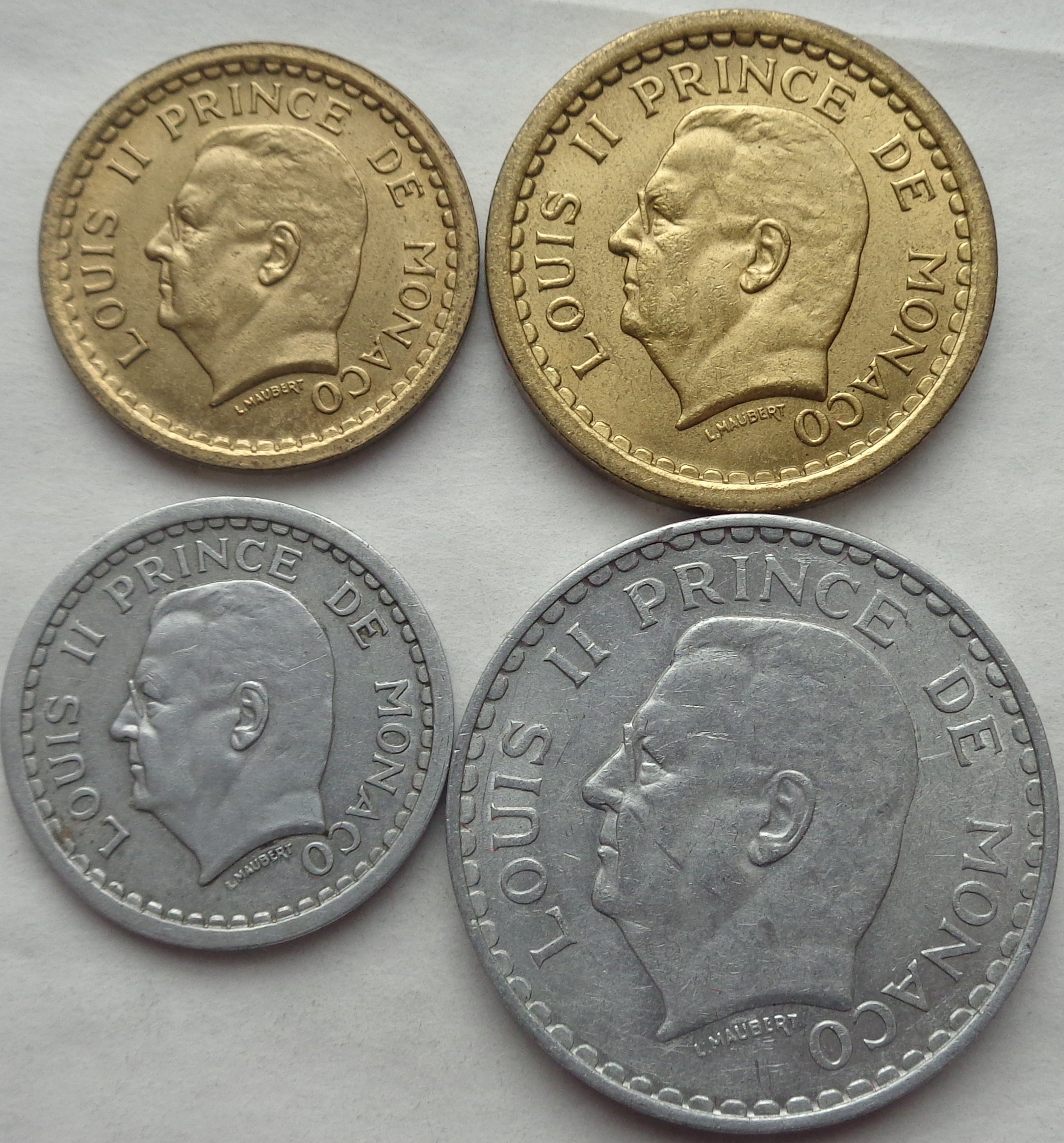 МОНАКО - 1 + 1 + 2 + 5 франків 1943 / 1945 НАБІР