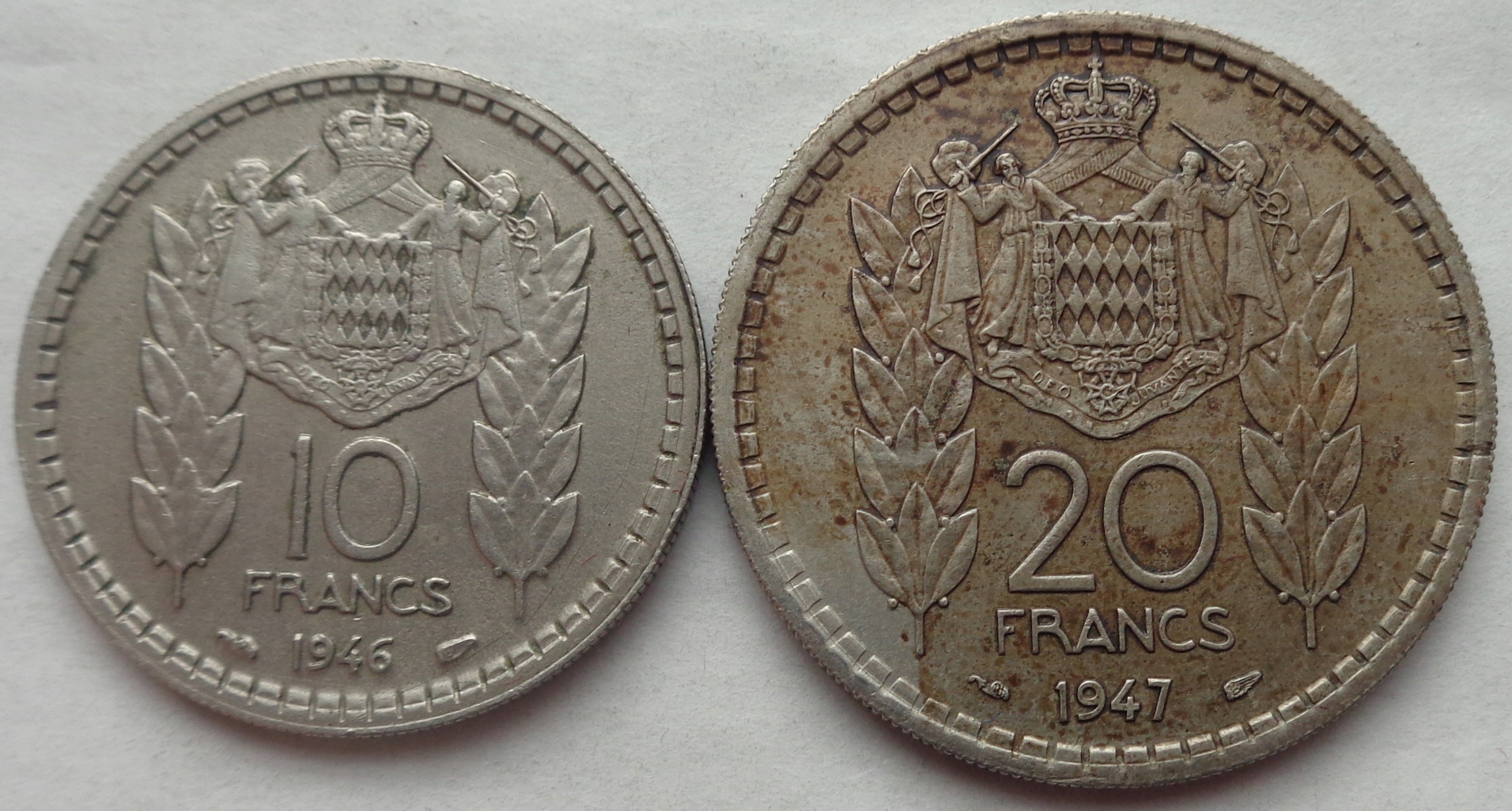 МОНАКО - 10 + 20 франків - 1946 / 1947 - НАБІР