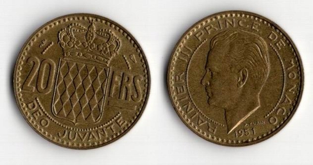 МОНАКО 1951 20 ФРАНЦУЗСКИХ