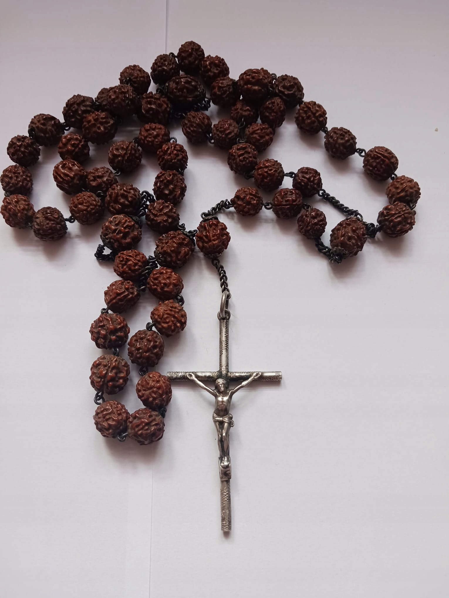 Matern Monastery Rosary, изготовленный из репутичного дерева, закончился распятием в серебре, полевой период 19 -го века 74 см DL.