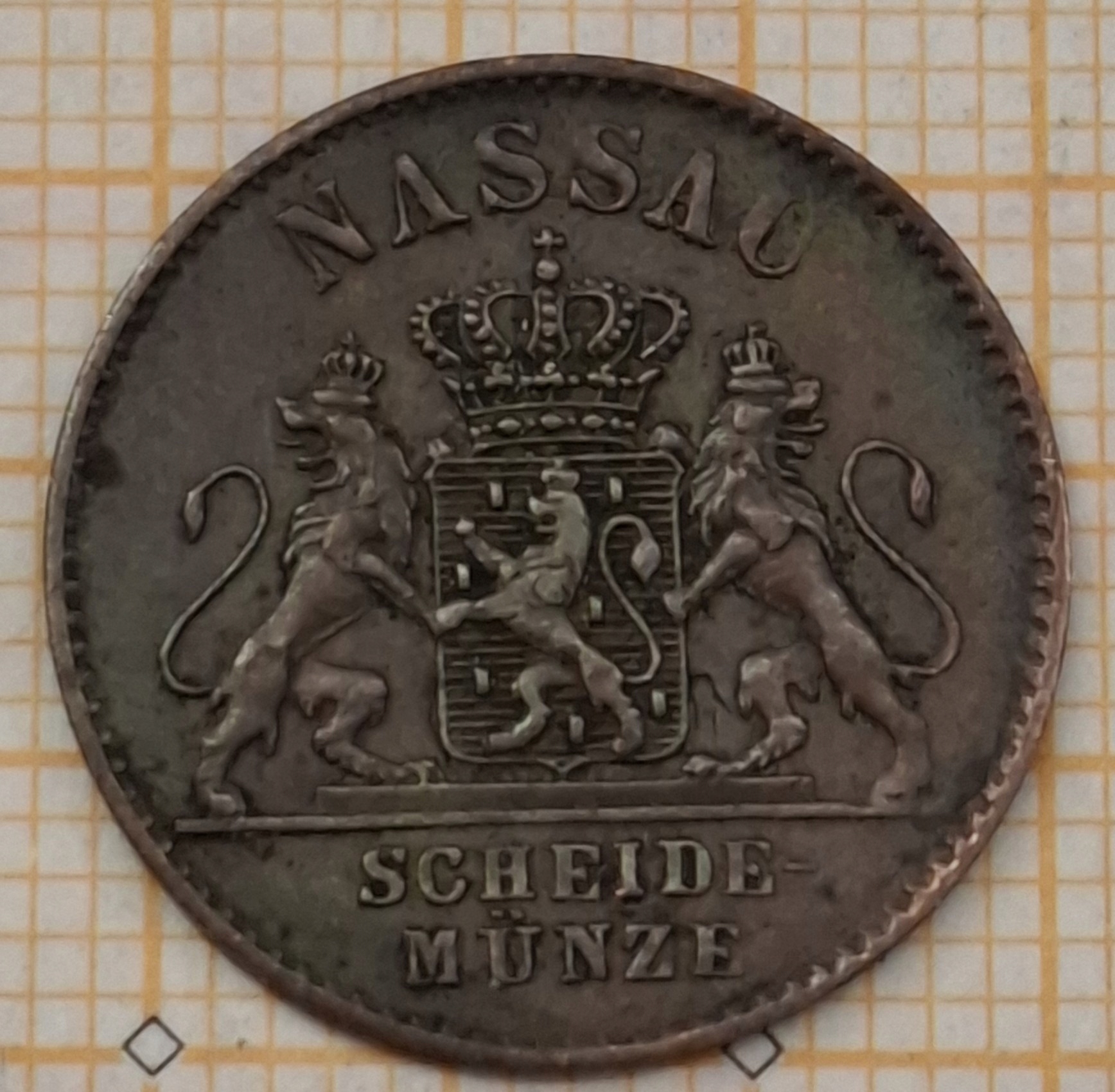 Монета 1 пфенниг 1860 г. Нассау Германия