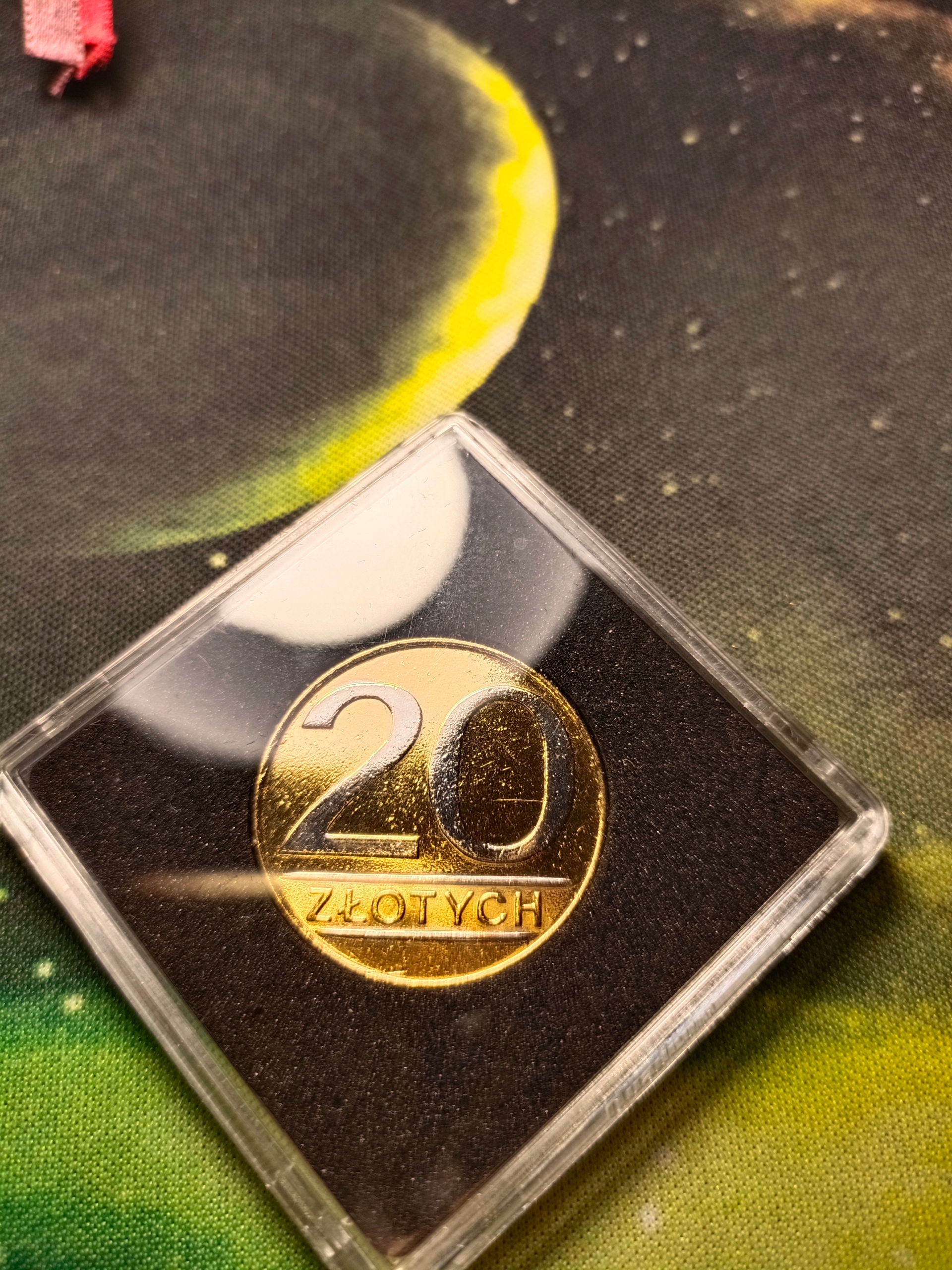 МОНЕТА 20 ЗЛЫХ, ВАРИАНТ С ЗОЛОТЫМ И РОДИЕВЫМ ПОКРЫТИЕМ, 1987 ГОДА.