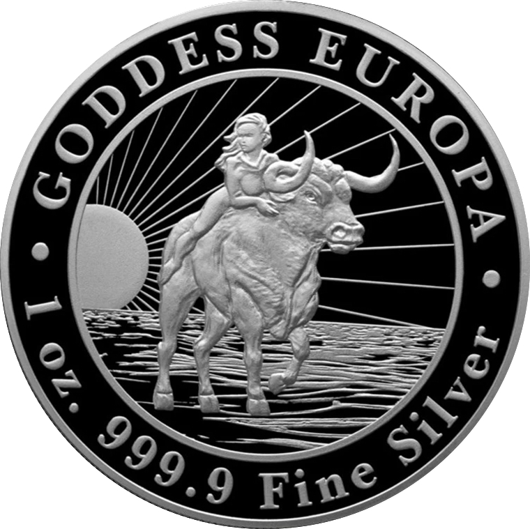МОНЕТА 5 ДОЛАРІВ БОГИНЯ ЄВРОПА 1 УНЦІЯ СРІБЛА КОРОЛЕВА ЄЛИЗАВЕТА 2022